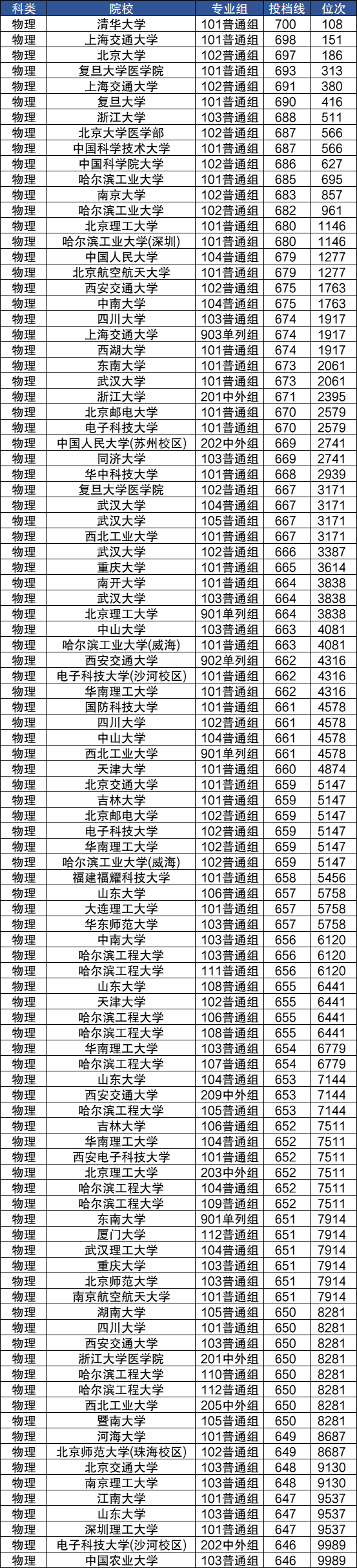 篇幅有限,这里仅展示物理类部分院校分数线一览表: