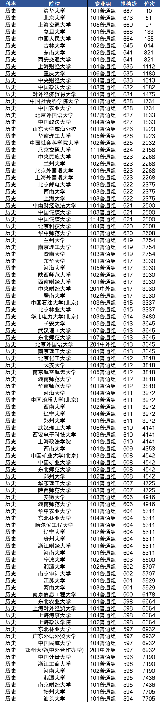篇幅有限,这里仅展示历史类部分院校分数线一览表,更多院校分数线可滑至底部分数框输分查询:
