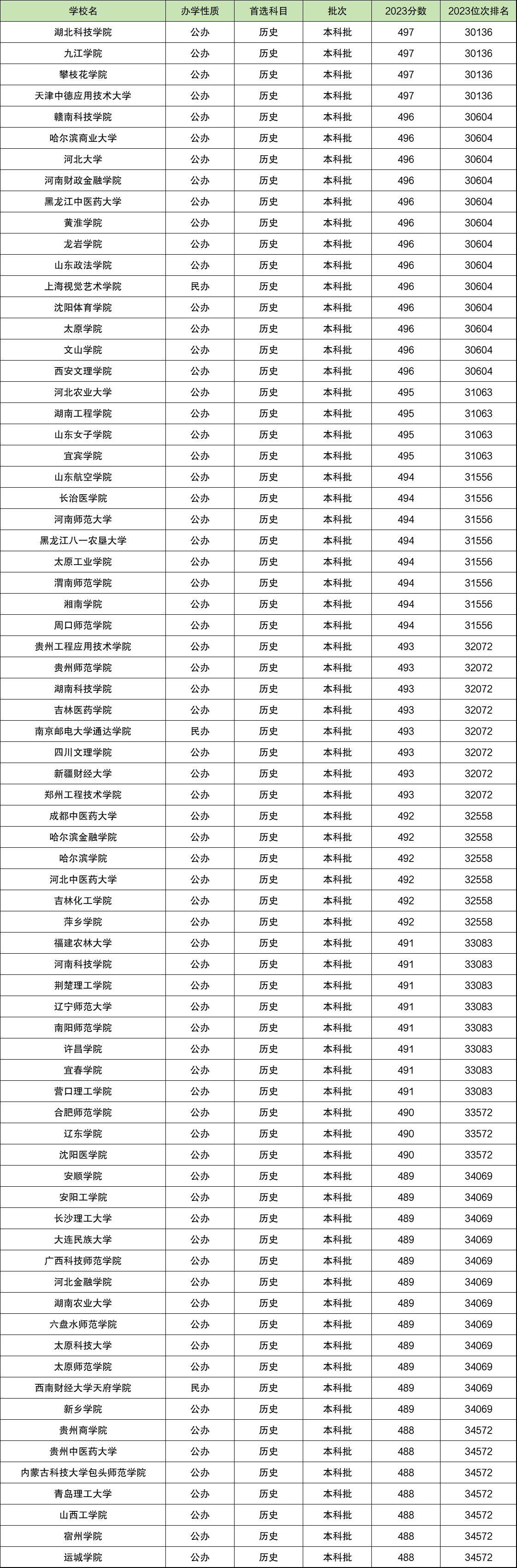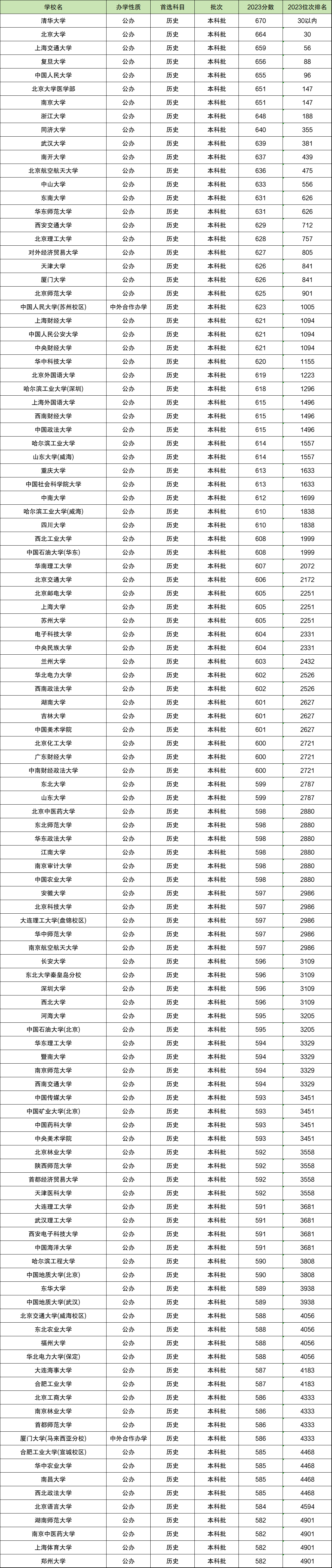 四、2023河北高考历史位次对应院校