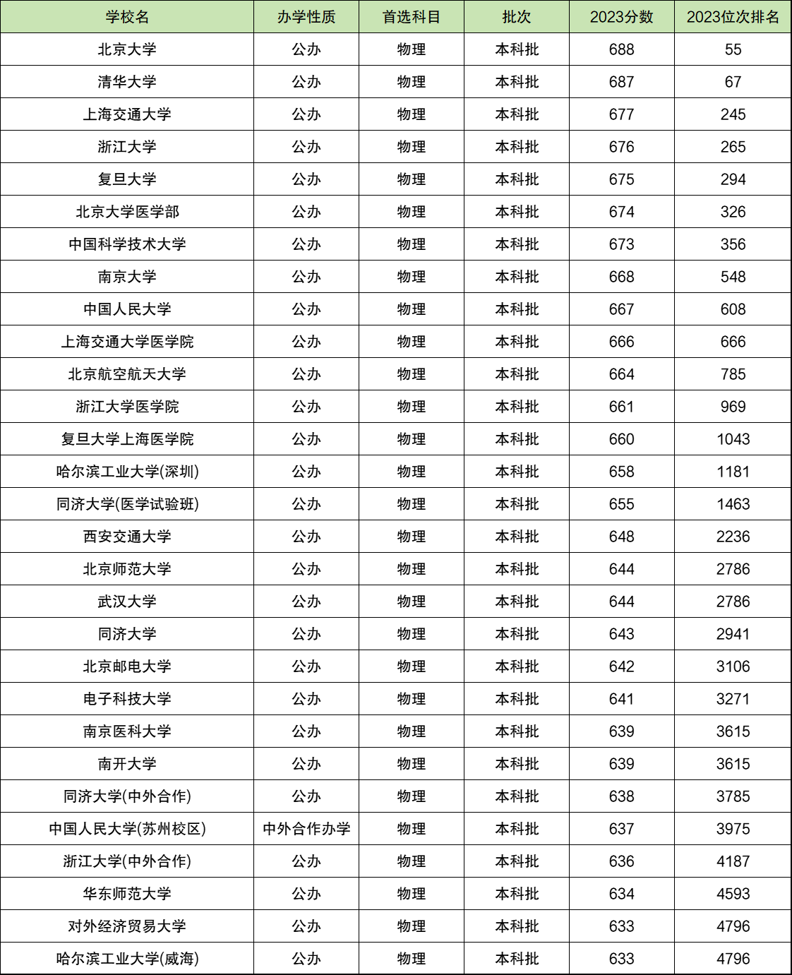 一、2023河北物理分数排名对应大学