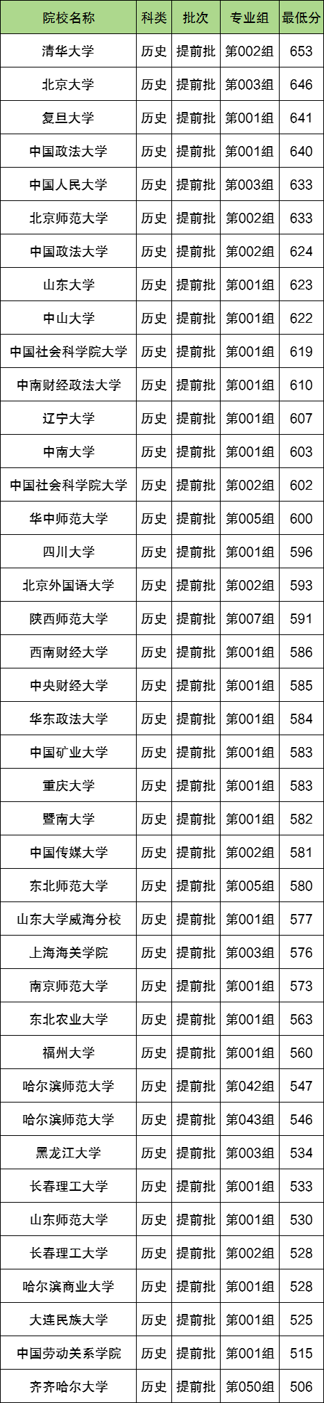 历史类分数线最高、最难考的是清华大学,2024年最低分653。