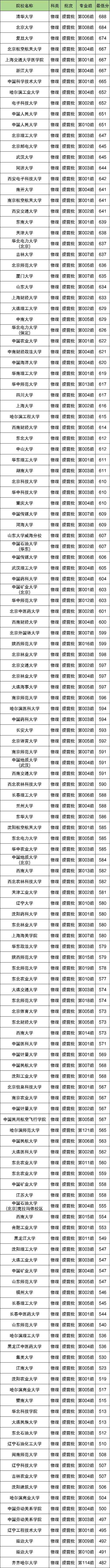 物理类分数线最高、最难考的是清华大学,2024年最低分688。