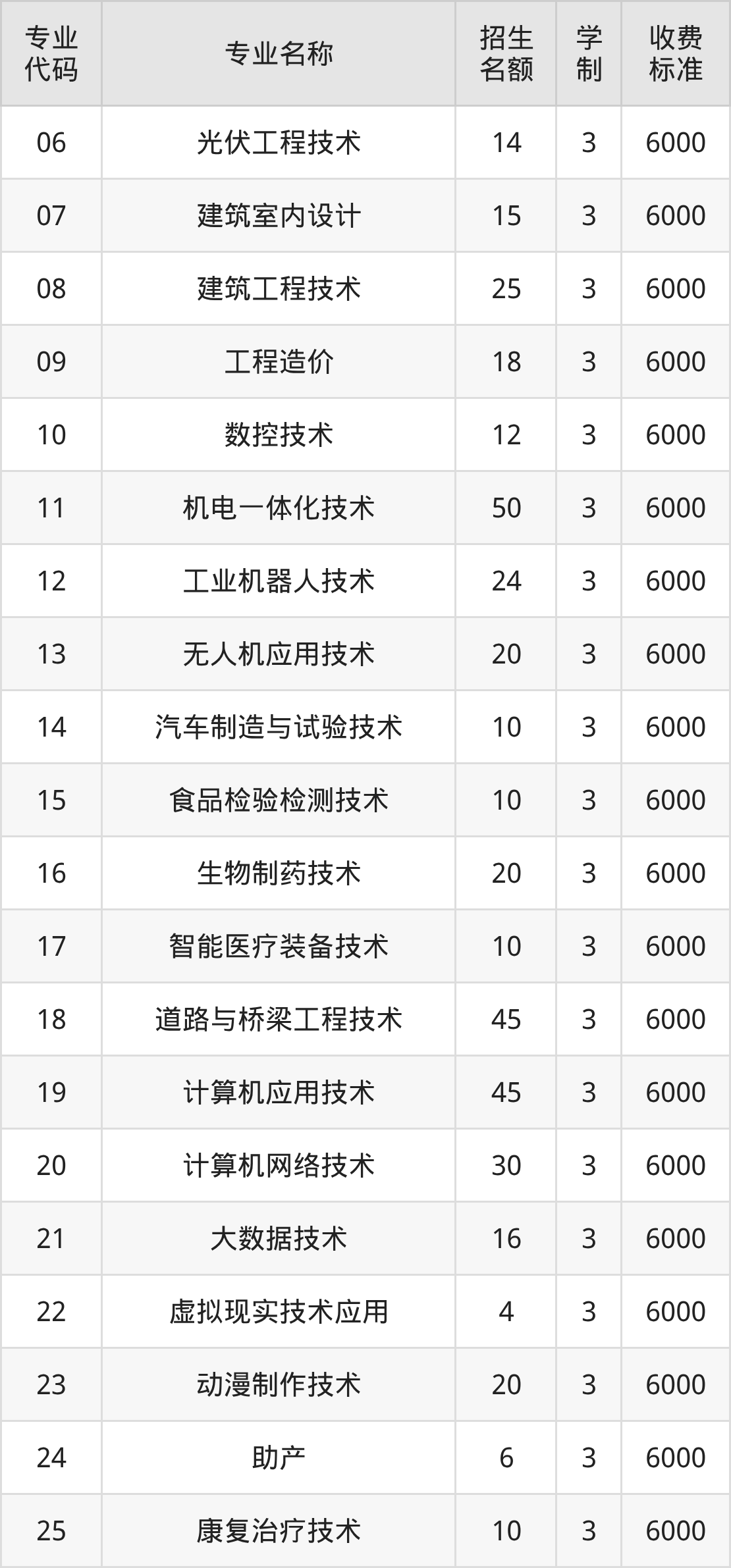 | 07 | 建筑工程技术 | 5 | 3 | 6000 |