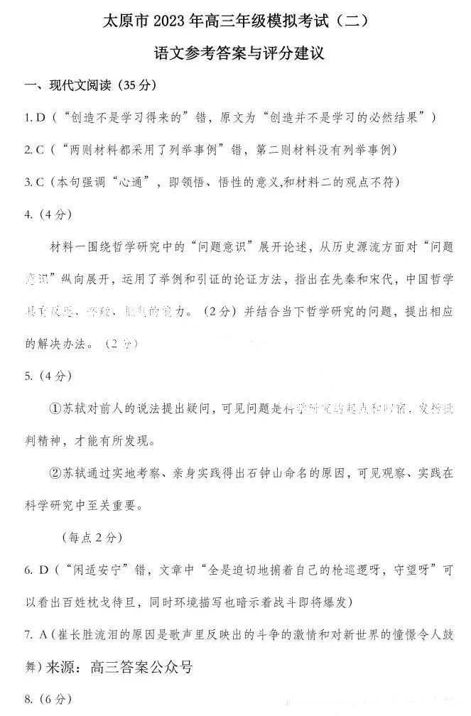 2023山西二模其他科目试卷及参考答案汇总:https://www.gk100.com/read_52121782.htm(点击查看)