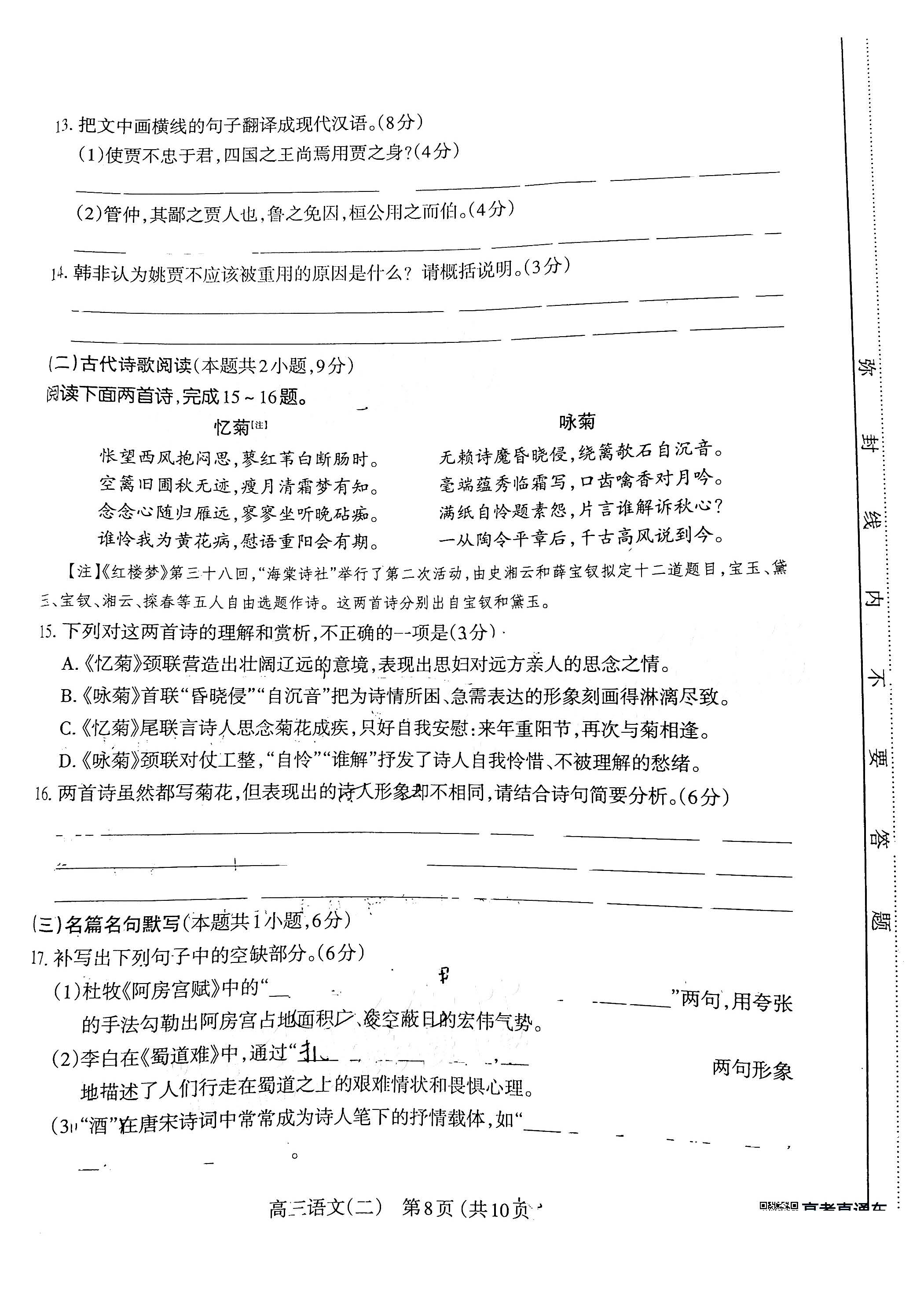 2023山西二模考试将于2023年4月21日进行考试,本文将在山西高三二模考试结束后为大家及时更新2023山西二模语文试卷及答案,下文为小编收集整理的2023山西二模语文试卷及答案,一起来看看山西二模2023语文试卷及参考答案吧!