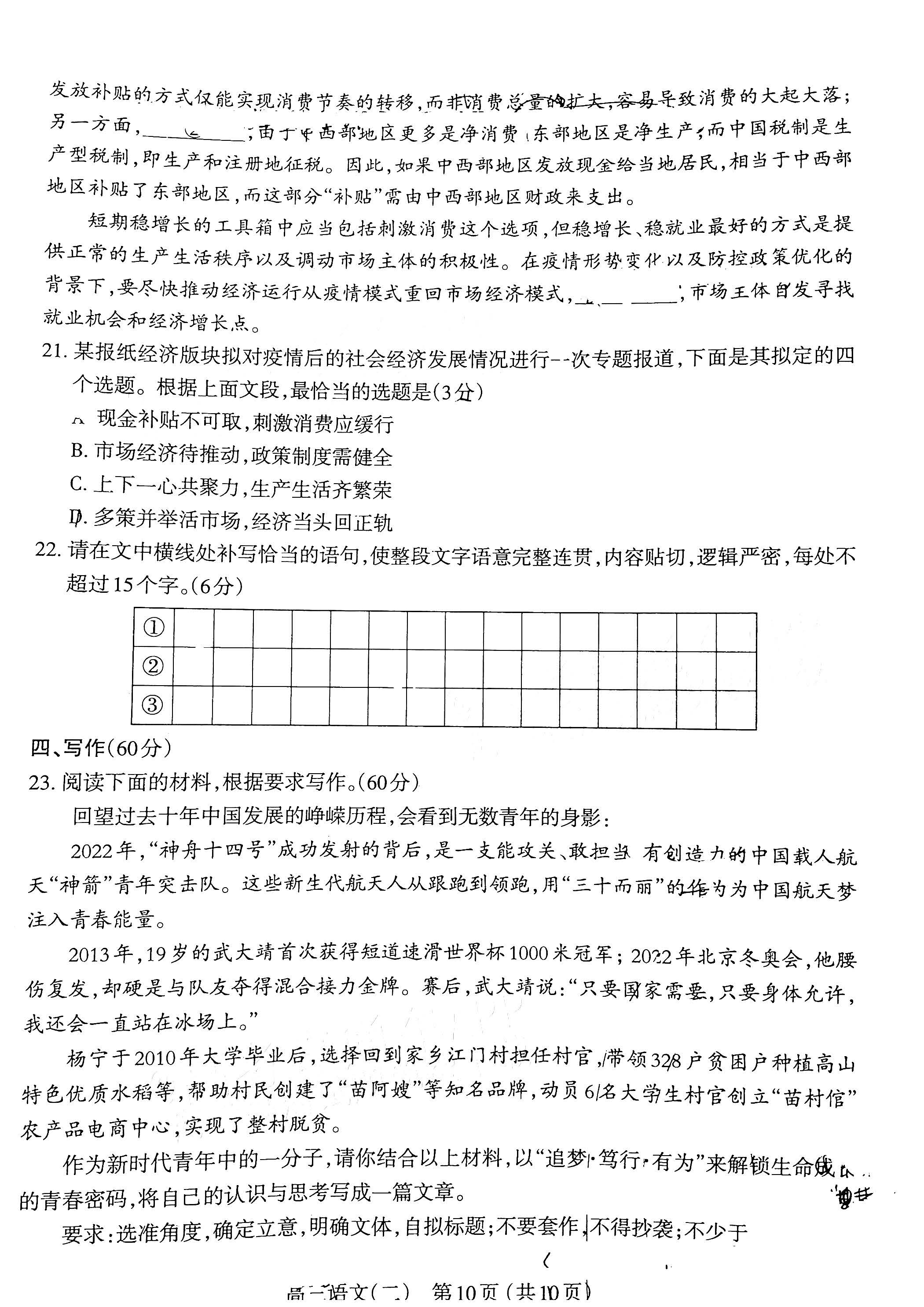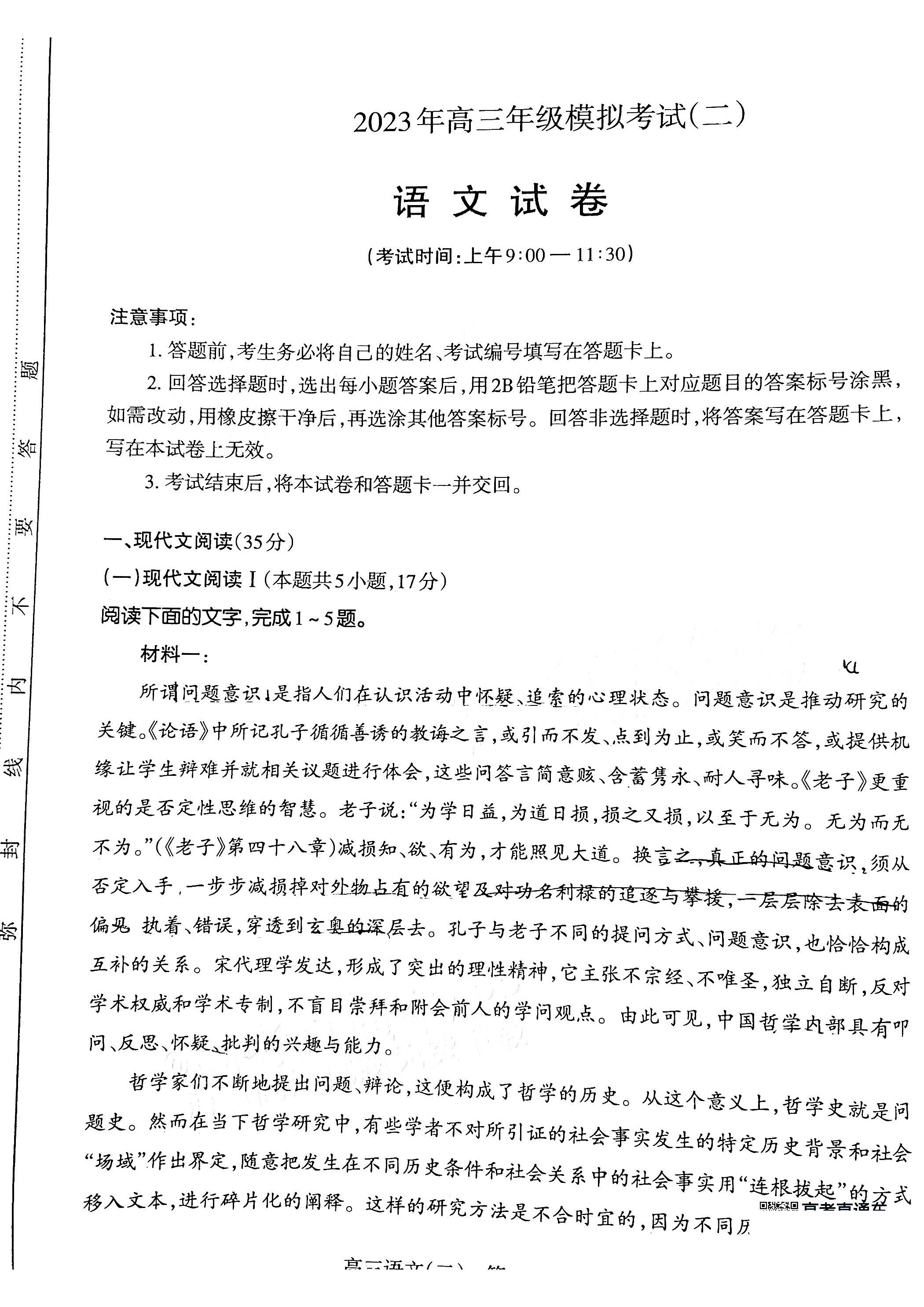 山西二模考试按教育部教育考试院公布的2023年普通高等学校招生考试大纲的要求,由省招生考试院统一组织命题和制卷。此次考试山西省的同学都会参加,包括机构的复读学生。含金量非常高,数据参考也具有很大的意义,本文将为大家带来2023山西二模语文试卷及答案解析。