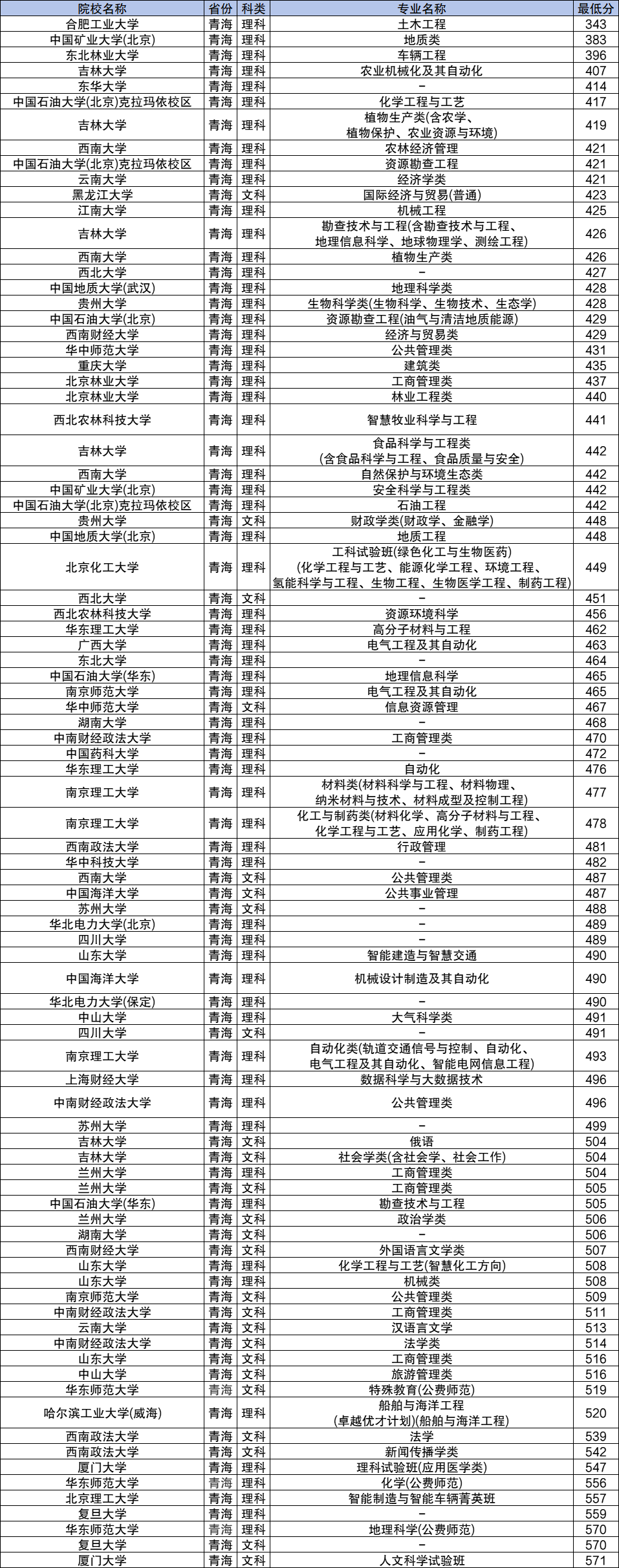 下面是2024年青海高校专项计划录取分数线一览表(滑动查看):