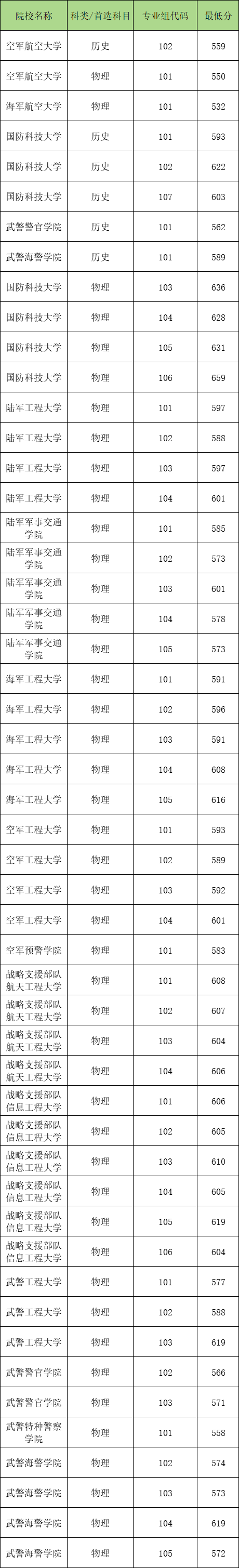 广东考生最低532分有机会上军校,历史类考生分数线普遍高于物理类考生。想提高被军校录取的概率,历史类考生高考成绩最好能够达到550分以上,物理类考生成绩最好能够达到530分及以上。