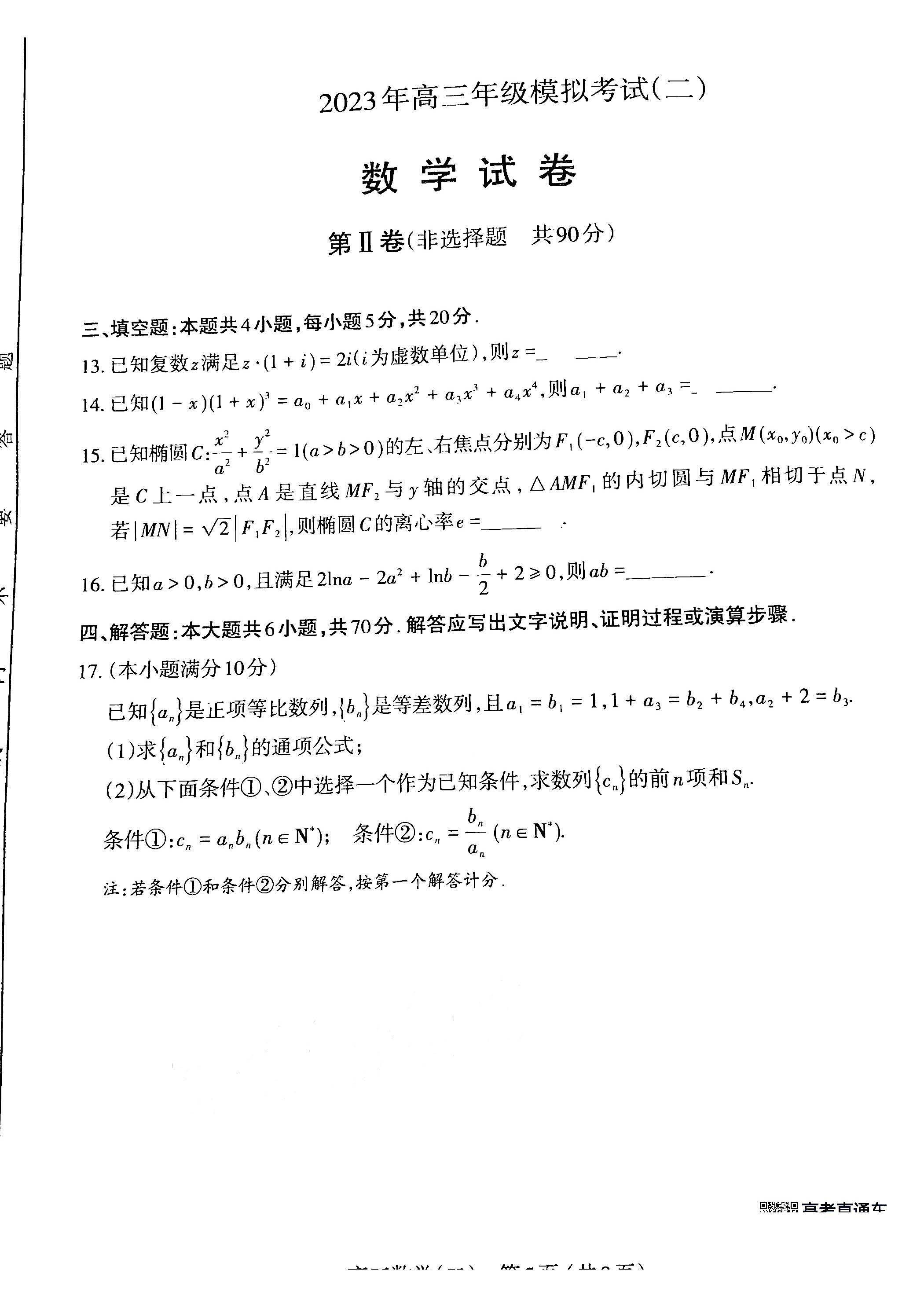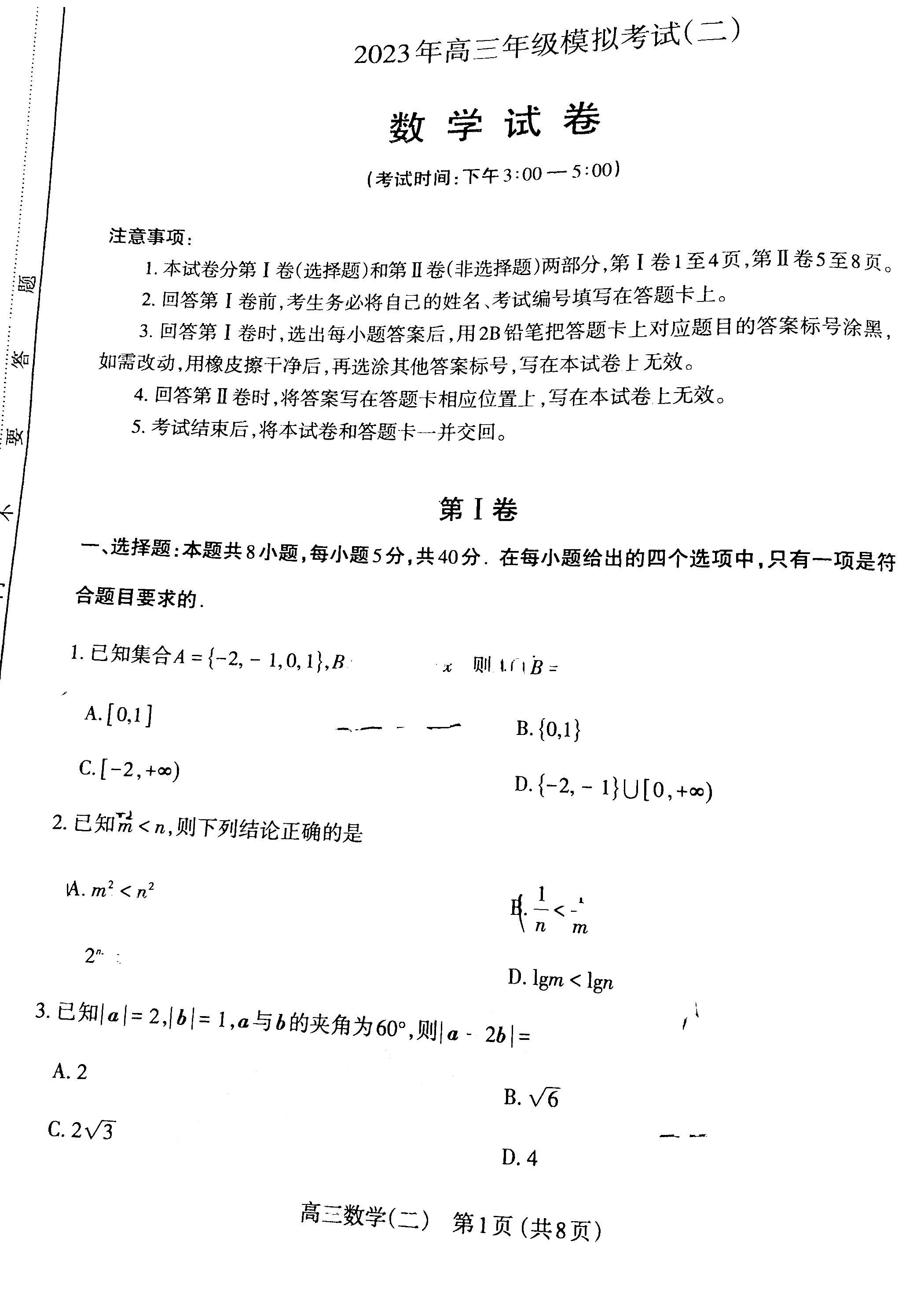 一、2023山西二模数学试卷