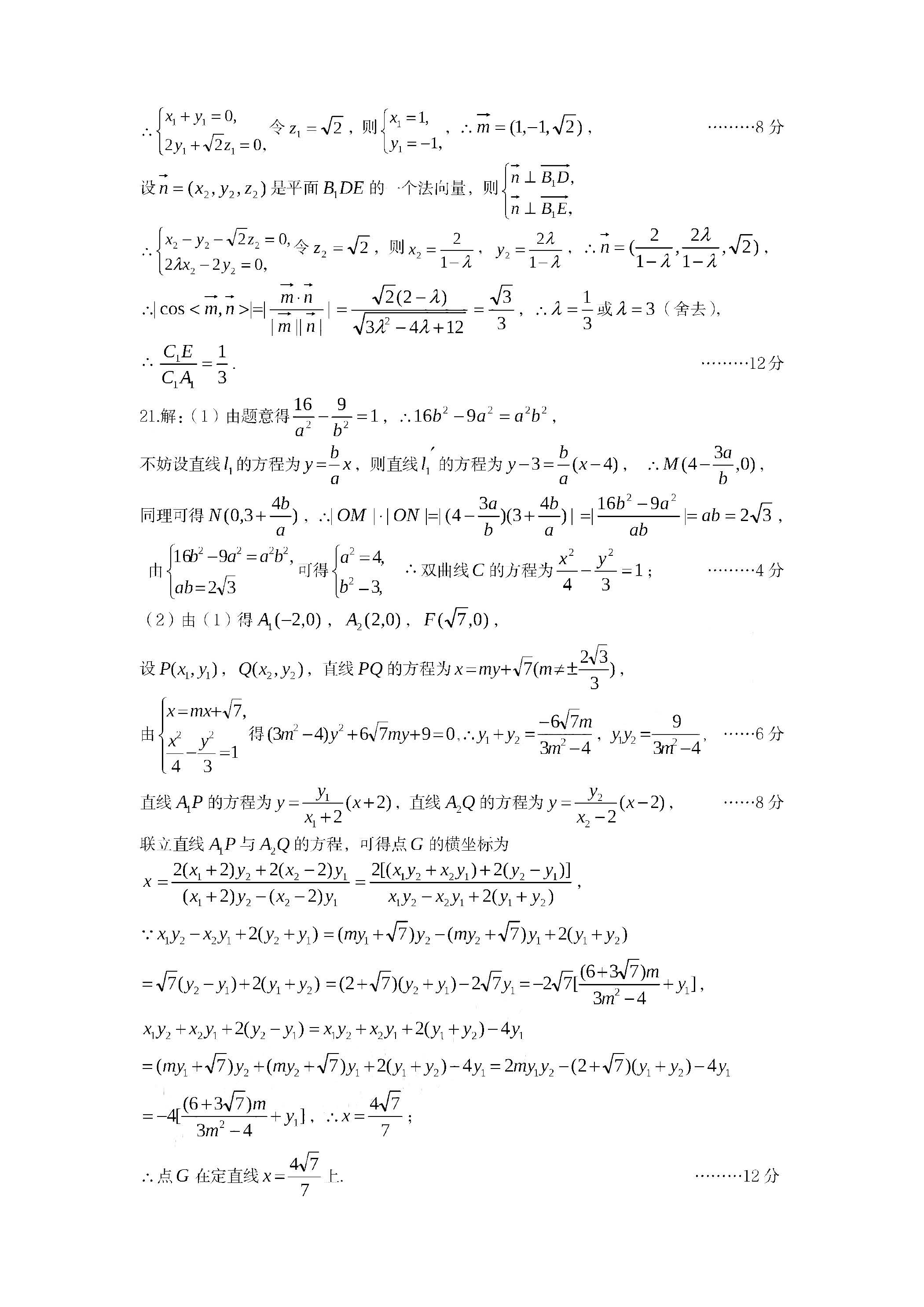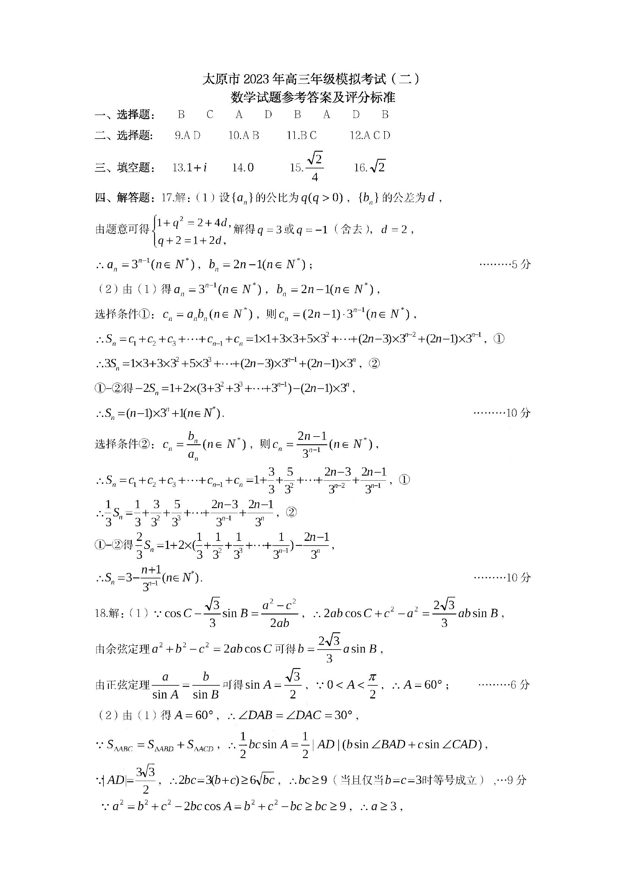 二、2023山西二模数学参考答案