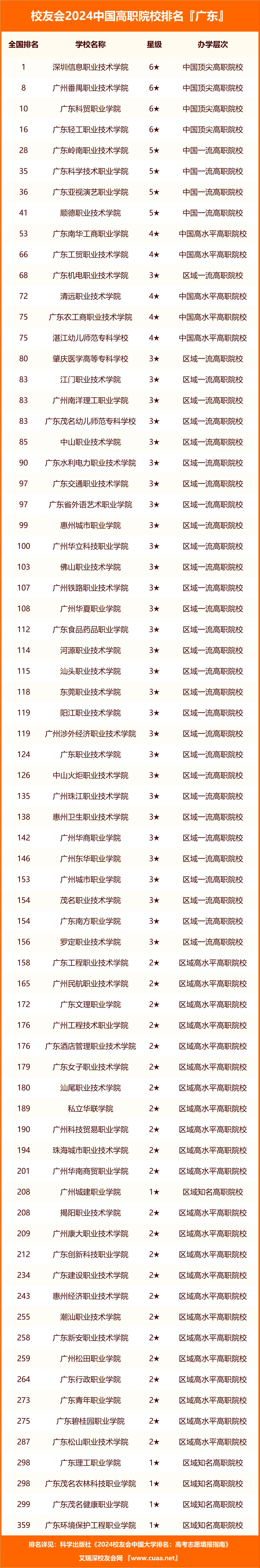 在2024年校友会公布的中国大学排名名单中,广东高职专科大学排名前十名的是: