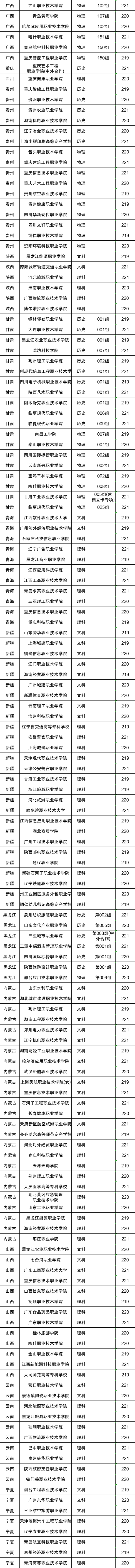筛选全国各省2024年录取分数线为220分的专科学校如下: