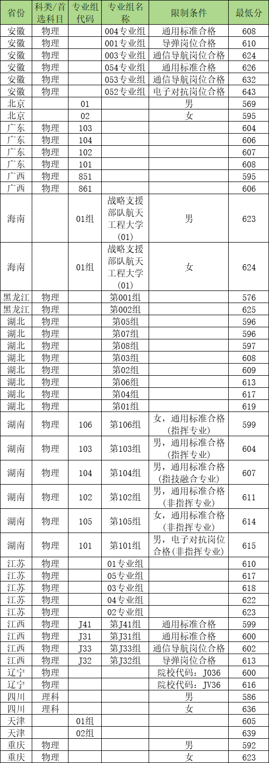 下面是2024年战略支援部队航天工程大学在全国录取分数线一览表: