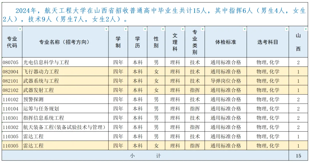 因篇幅限制,仅举例展示其中几个省份的招生人数,具体招生计划人数可点击【战略支援部队航天工程大学2024年招生简章】查看完整版。
