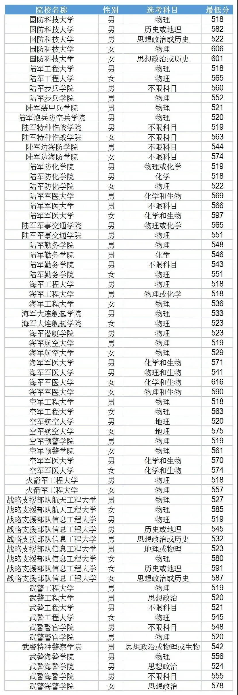 根据山东省教育招生考试院公布的2021年普通高校招生提前批次本科院校投档分数及名次,为大家整理出了2021年军队院校在山东省最低投档分及位次排名,供查看。