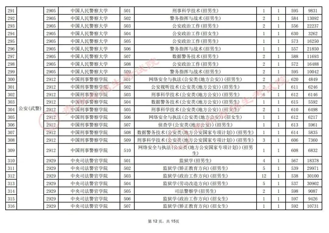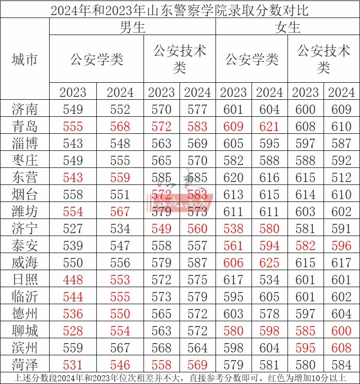 泰安:2024年公安学类专业分数线547分、公安技术类专业分数线557分;2024年公安学类专业分数线(女生)594分、公安技术类专业分数线(女生)596分;