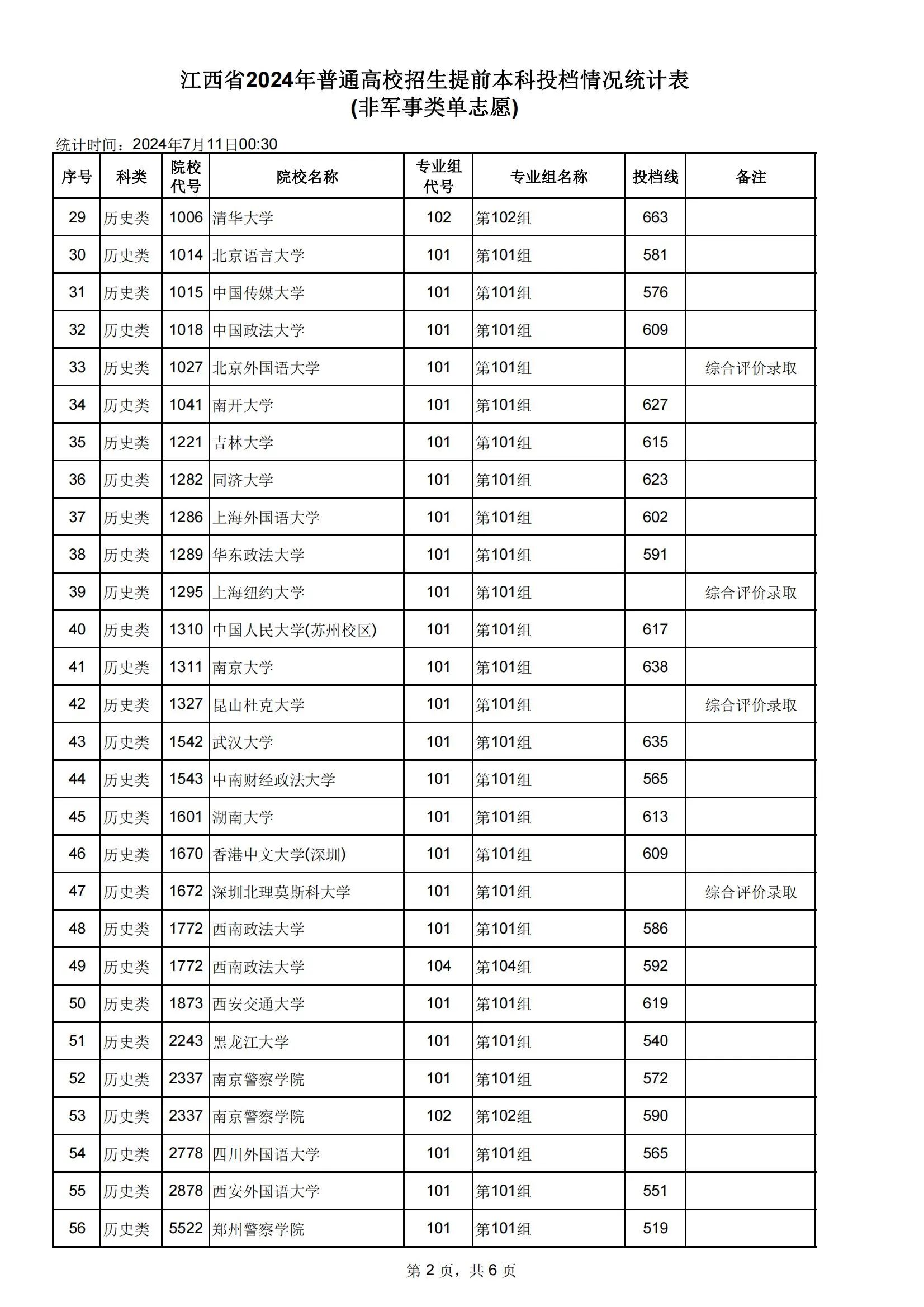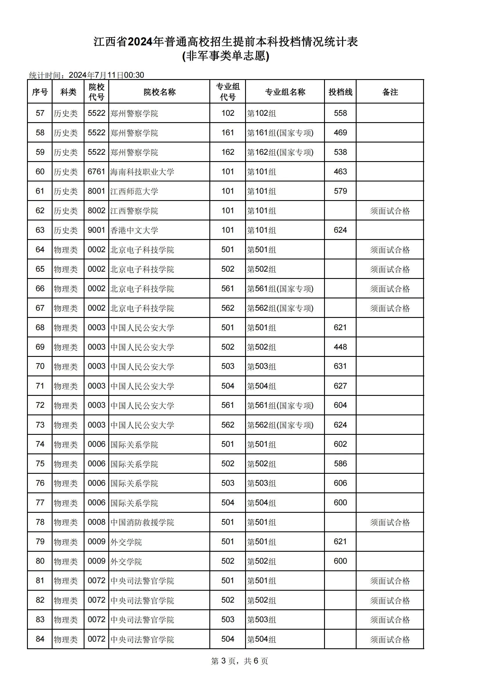 江西2024年高考本科提前批投档线已经公布。在江西首选历史科目高考本科提前批投档中,警校的投档分数线为: