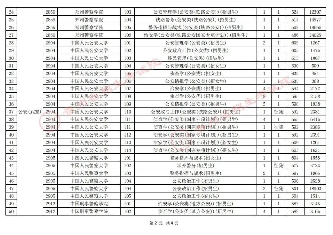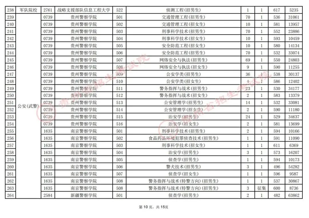 济南:2024年公安学类专业分数线552分、公安技术类专业分数线577分;2024年公安学类专业分数线(女生)604分、公安技术类专业分数线(女生)609分;