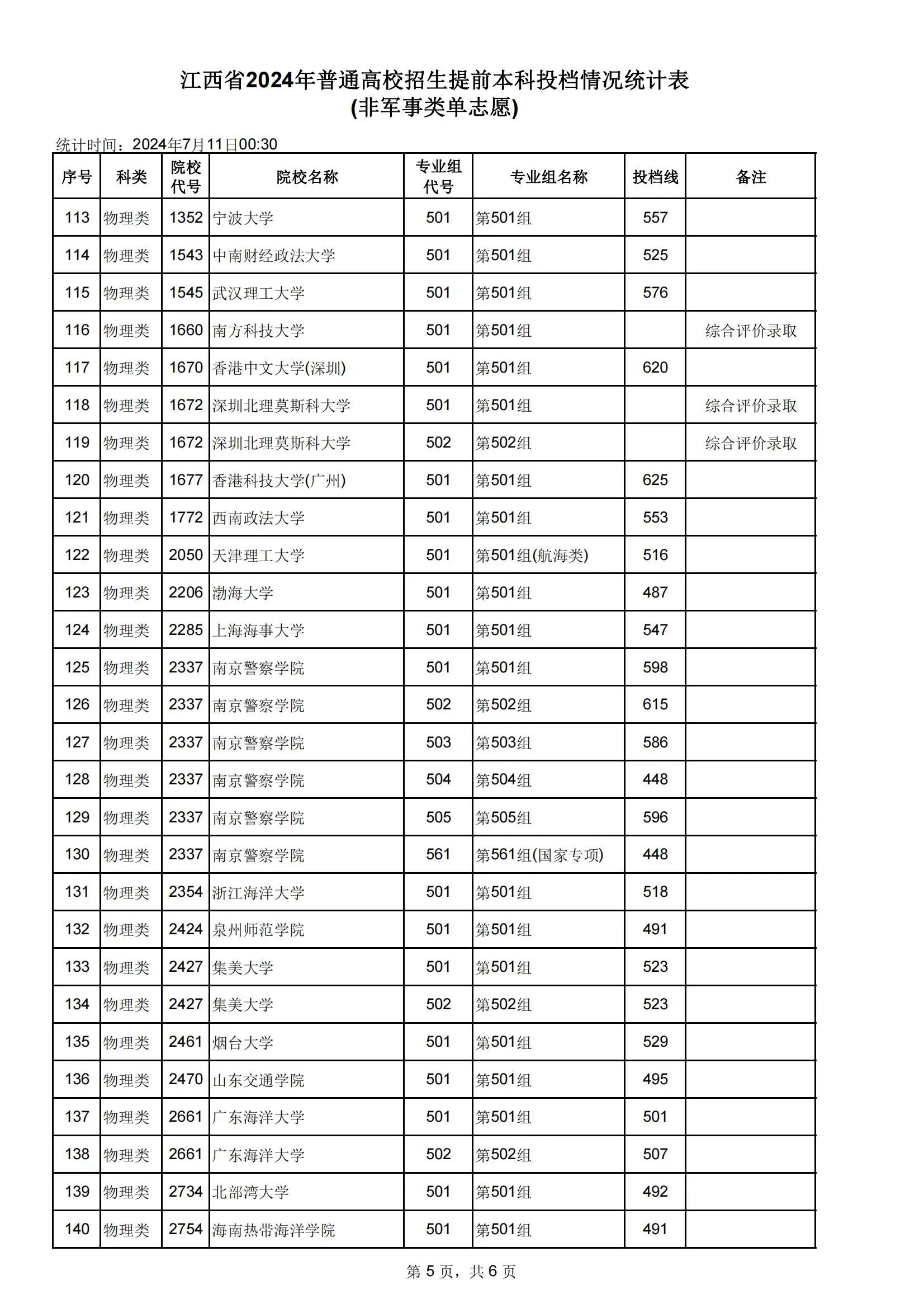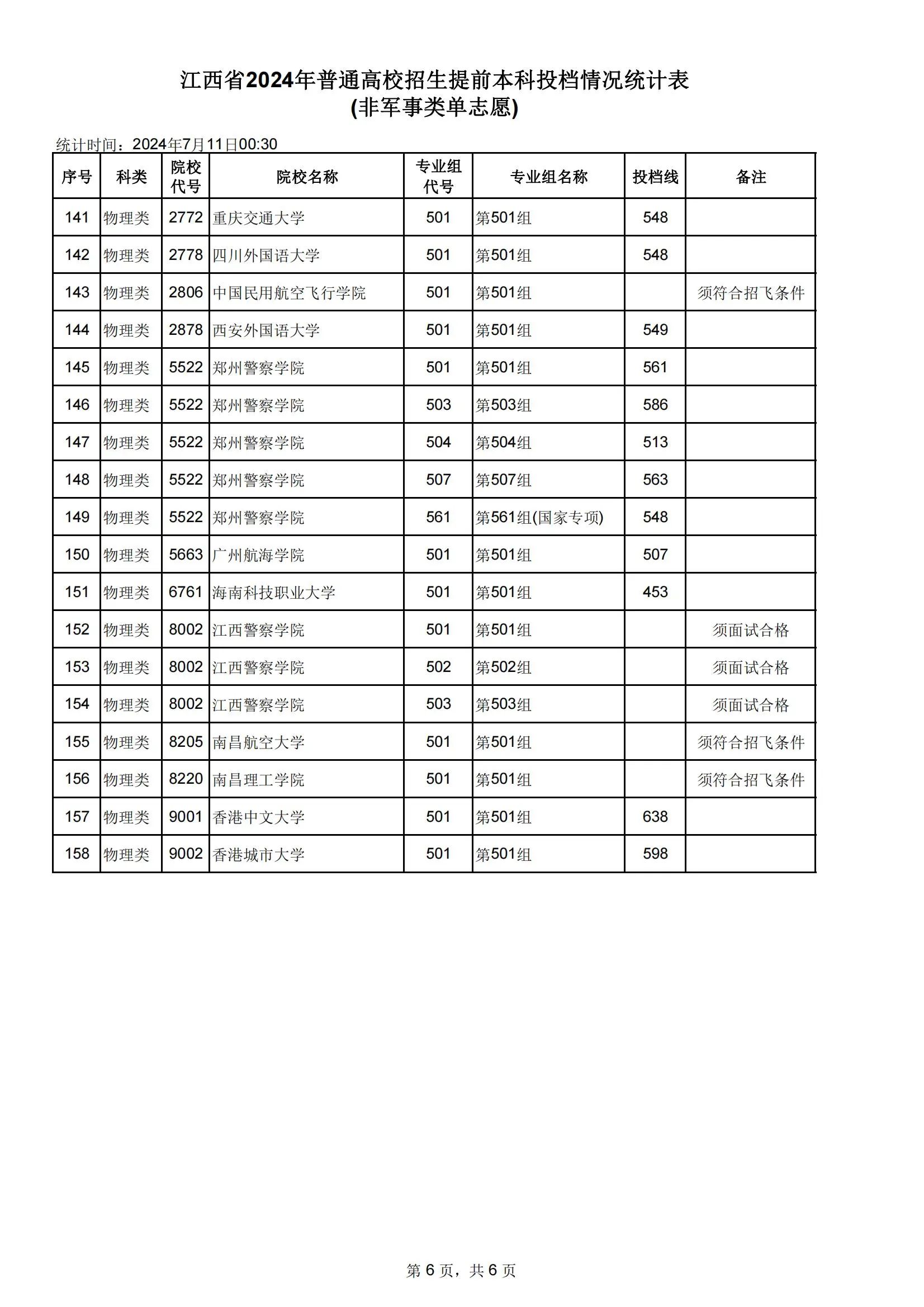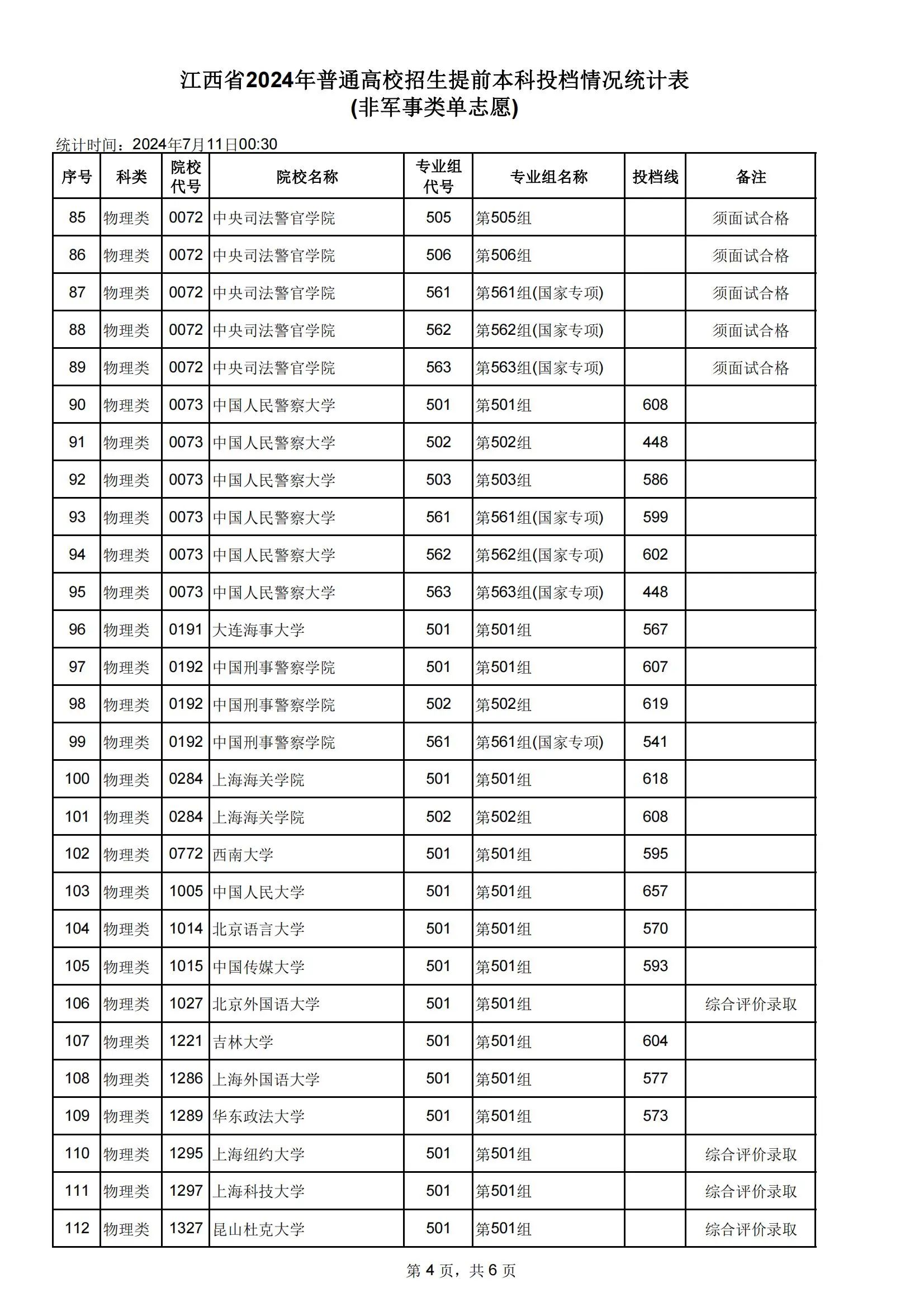 江西2024年高考本科提前批投档线已经公布。在江西首选物理科目高考本科提前批投档中,警校的投档分数线为: