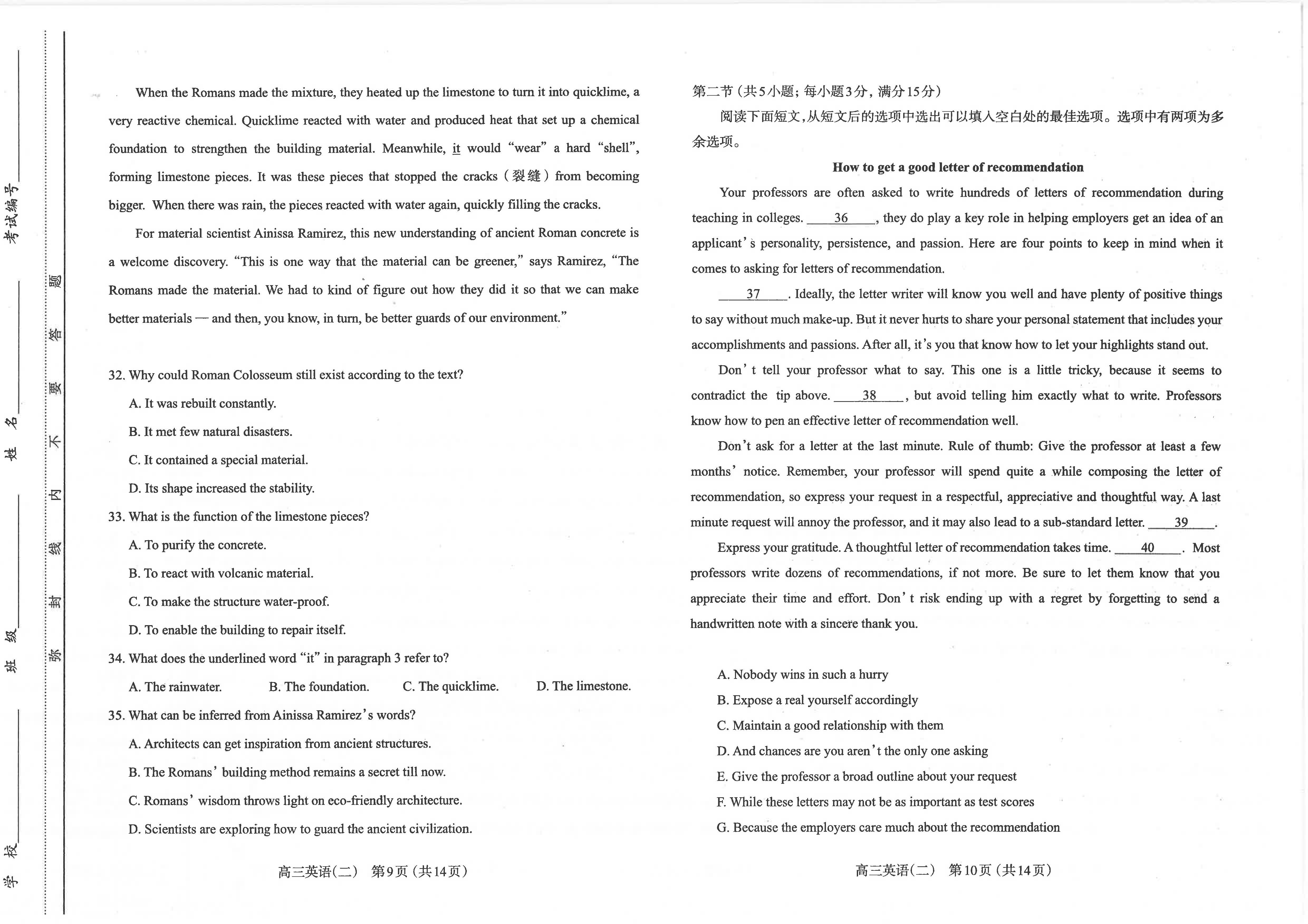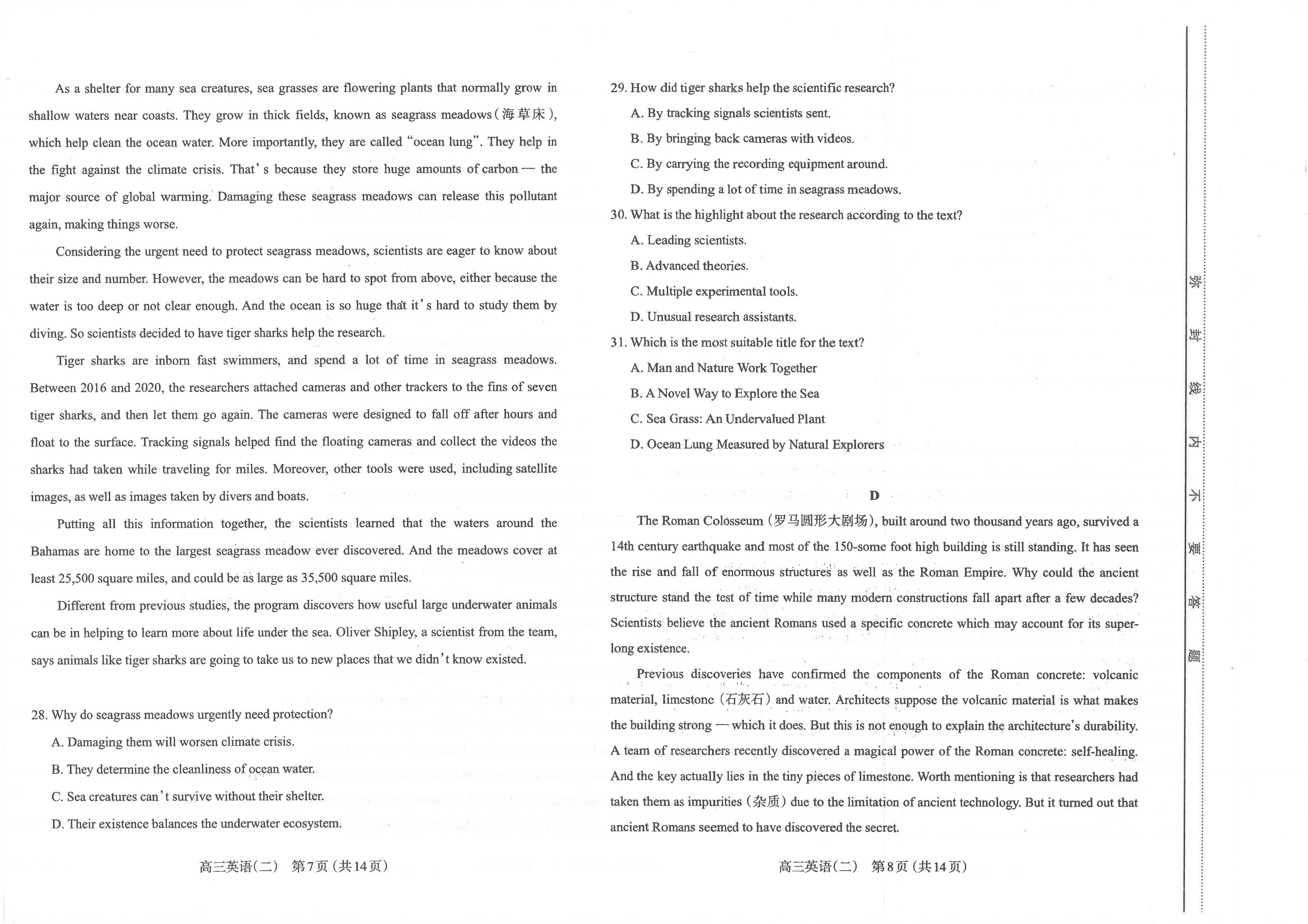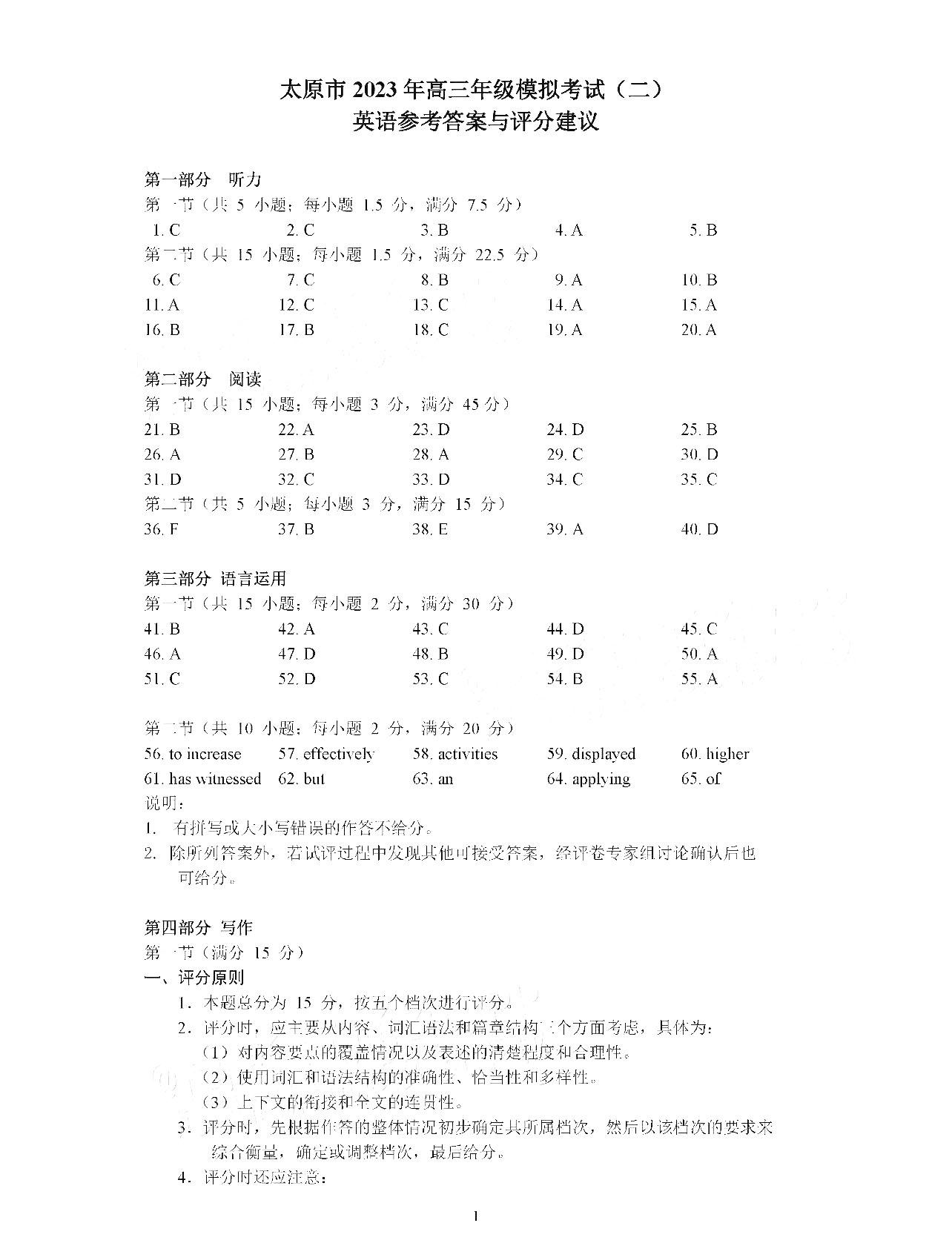二、2023山西二模英语参考答案