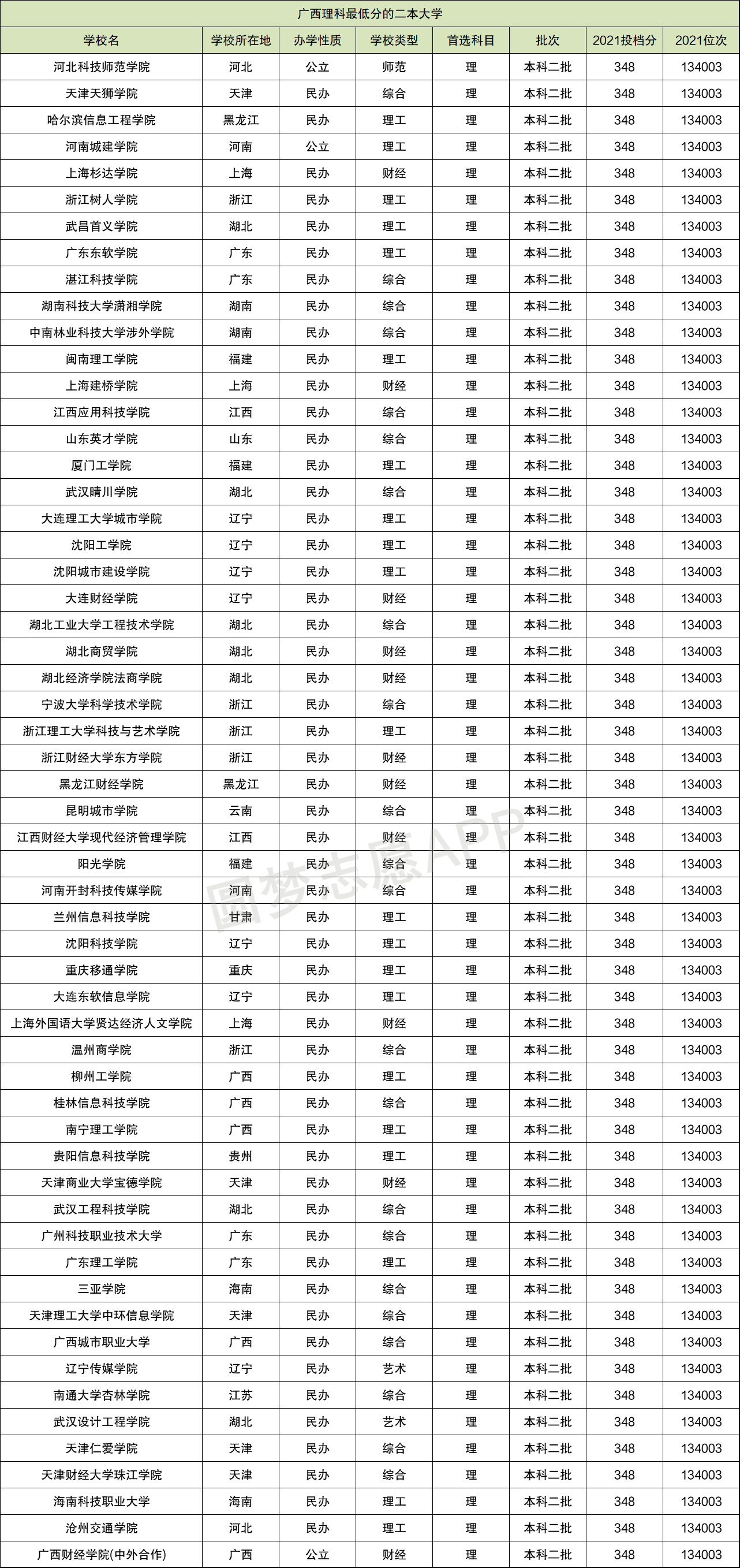 小编同样根据广西教育考试院公布的2021年招录数据,为大家整理出广西文科和理科收分最低的公办二本大学。