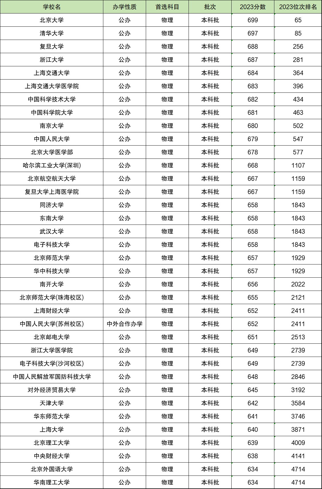 在1-5000名范围内,最高排名对应的大学是北京大学,最低录取排名为65位,排名对应分数为699分;