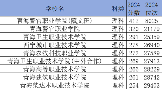 以下为2024年青海理科所有大专院校分数线: