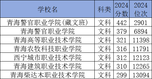 以下为2024年青海文科所有大专院校分数线: