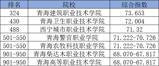 以下为青海2025年GDI高职高专排名:
