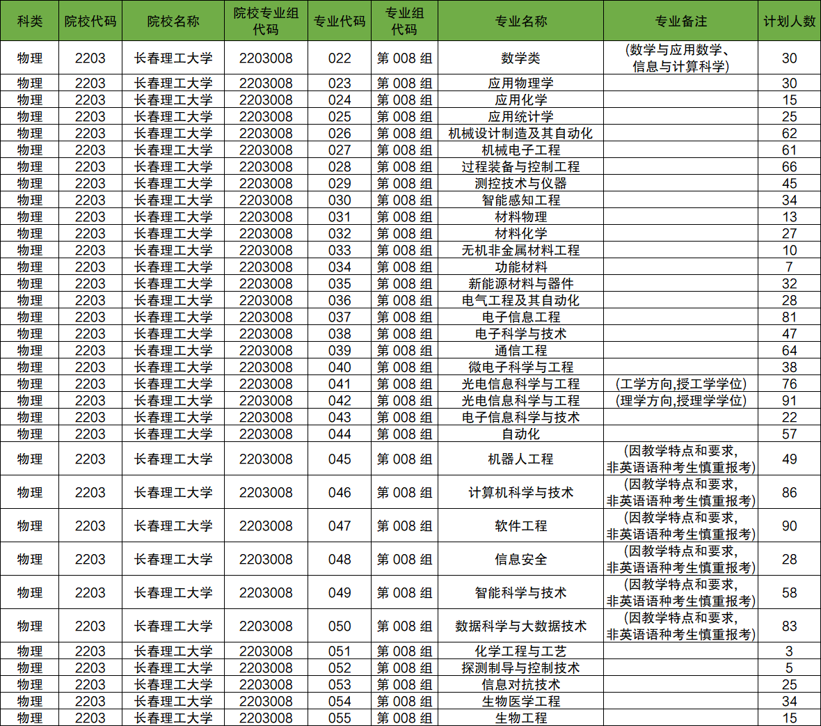 2024年长春理工大学的招生代码为2203001、2203002、2203006等,本期将介绍2024年长春理工大学各专业招生人数,以及高考志愿填报中各专业对应招生代码。