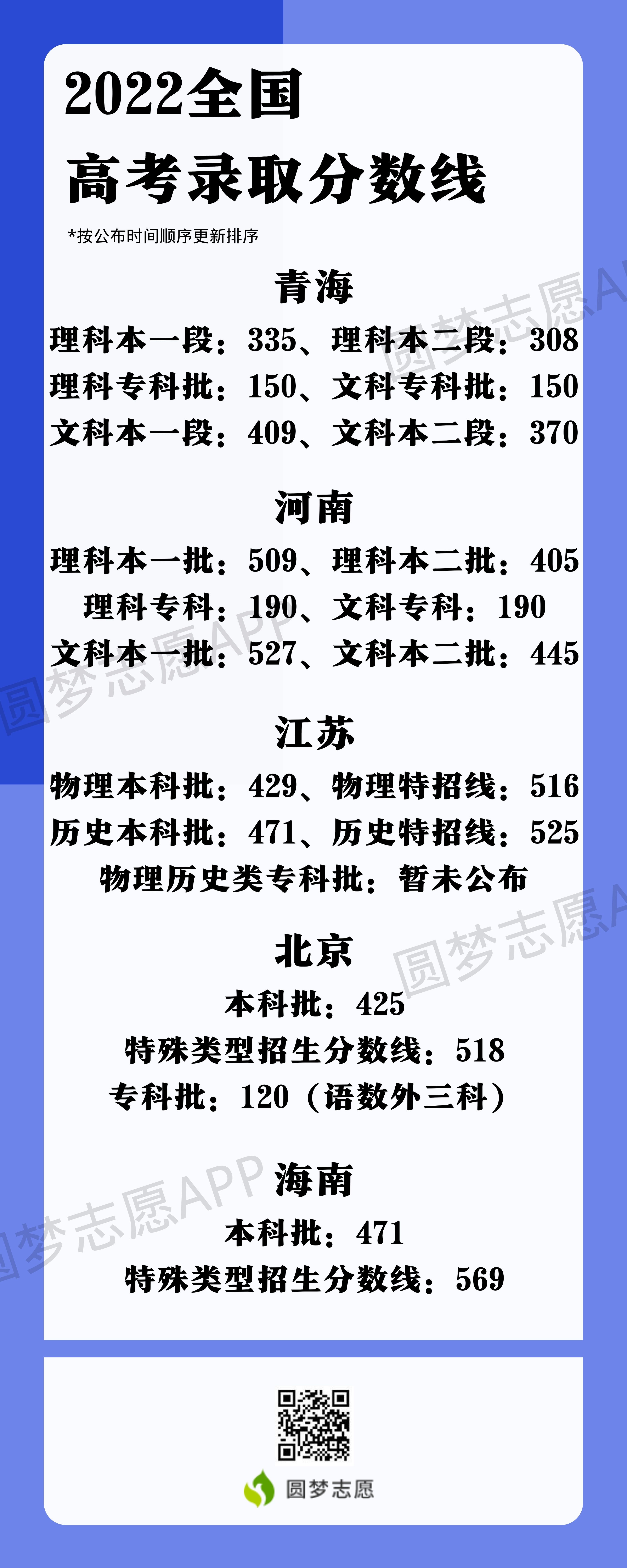 截至2022年6月25日,全国共有30省市公布了录取批次控制线,除上海外,其余省市均已公布了本省录取批次控制线!