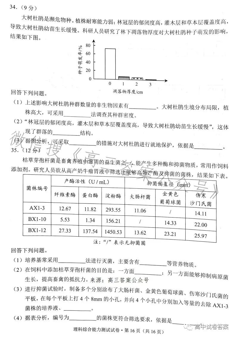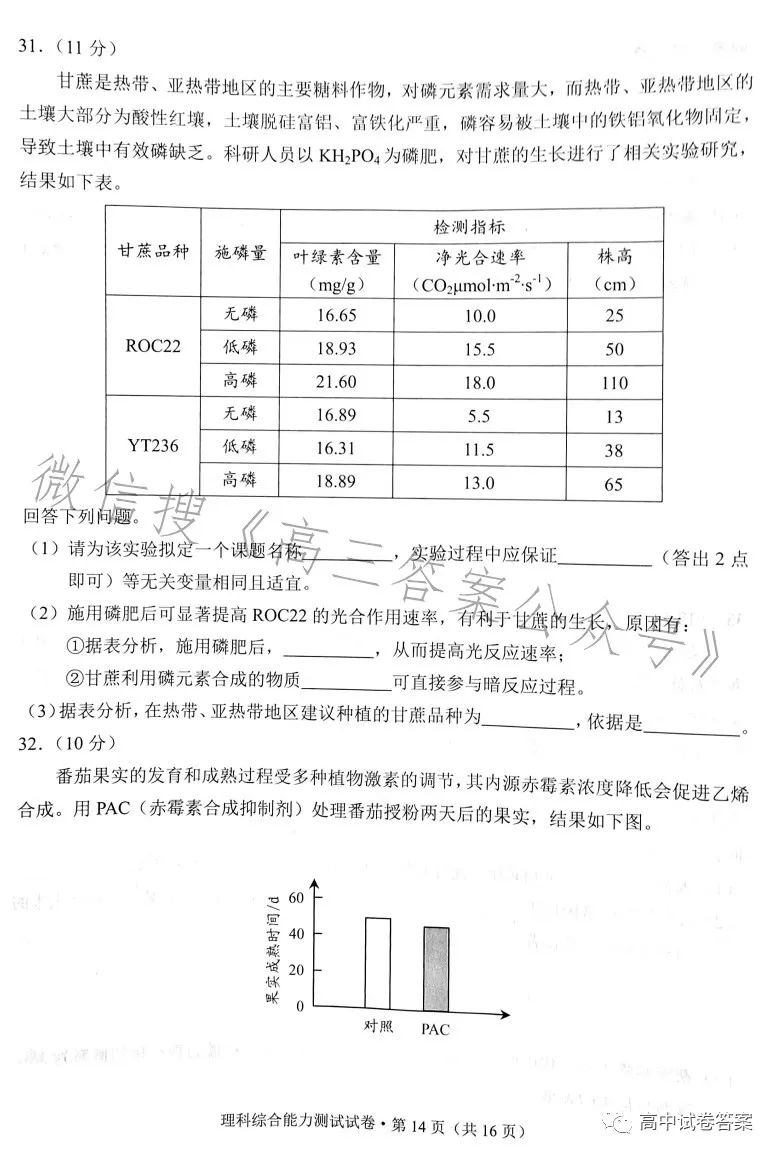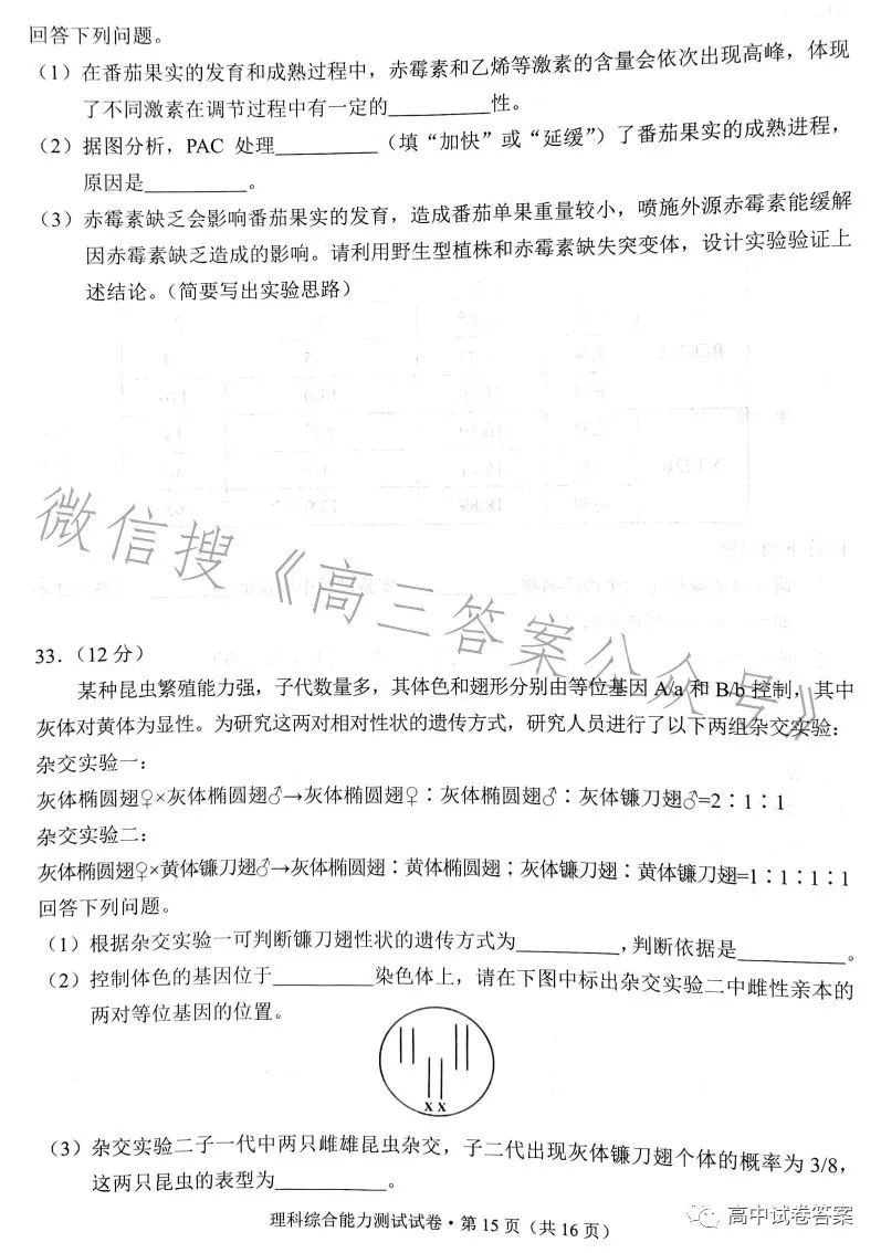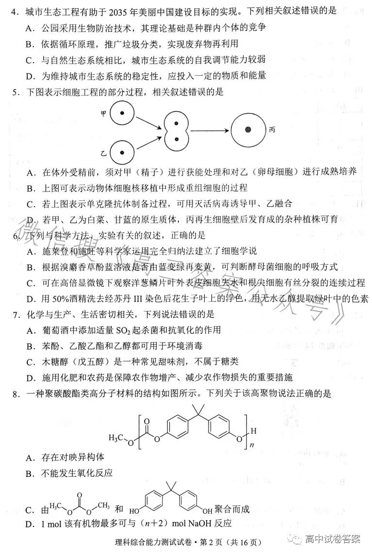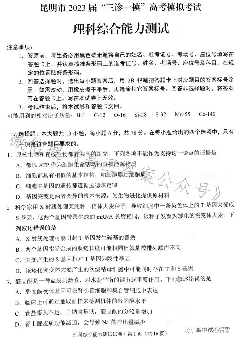 五、2023昆明三诊一模高三5月模考理综试卷及答案解析