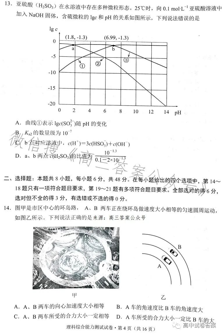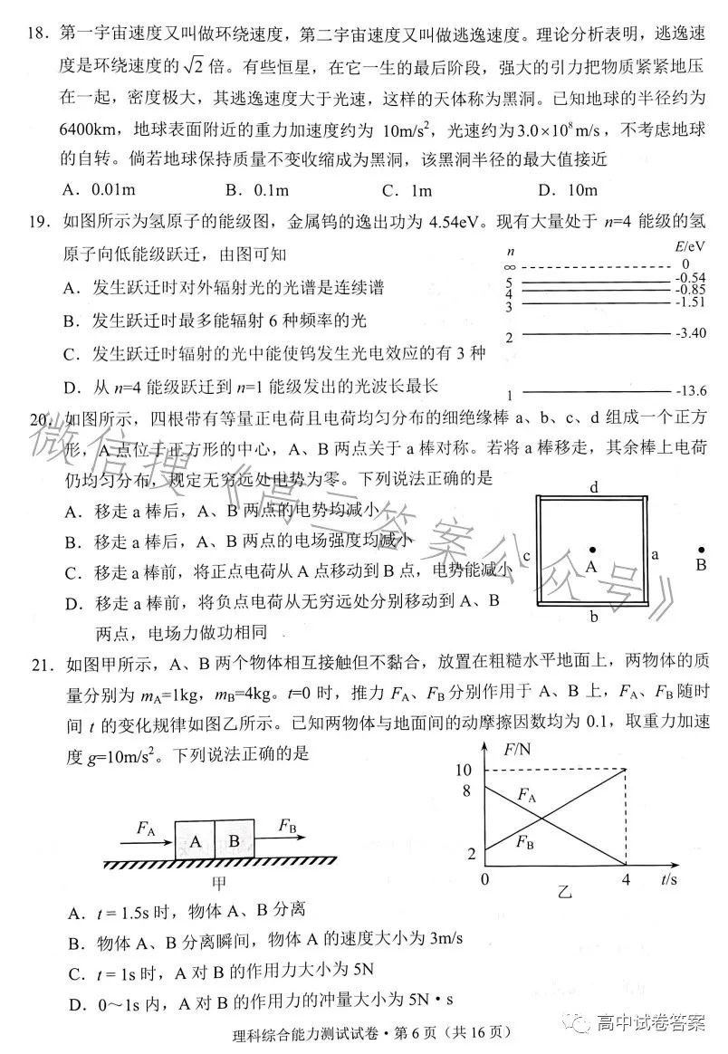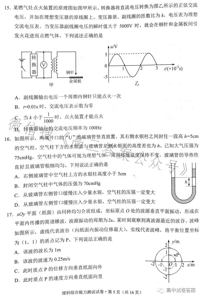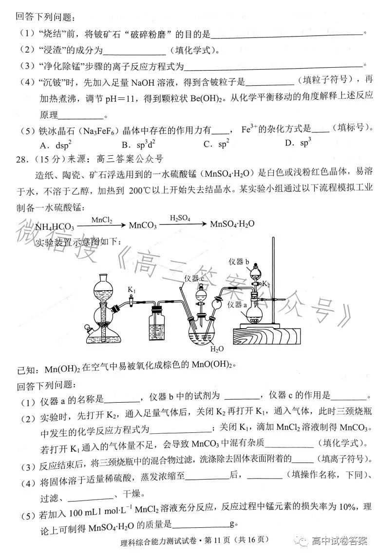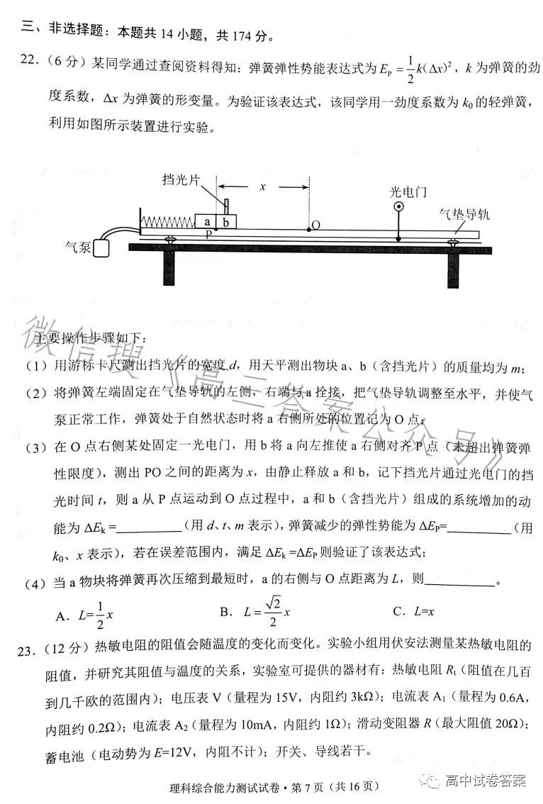 五、2023昆明三诊一模高三5月模考理综试卷及答案解析