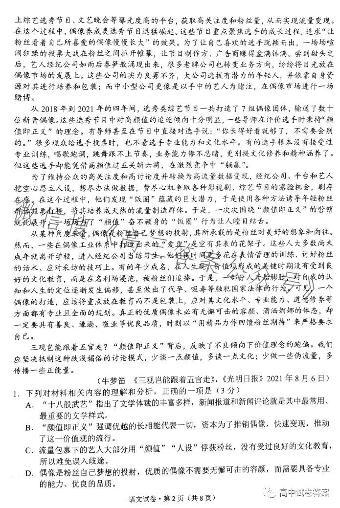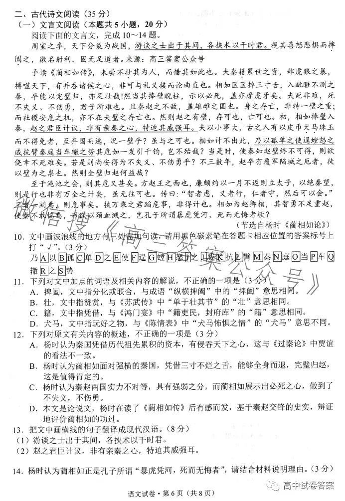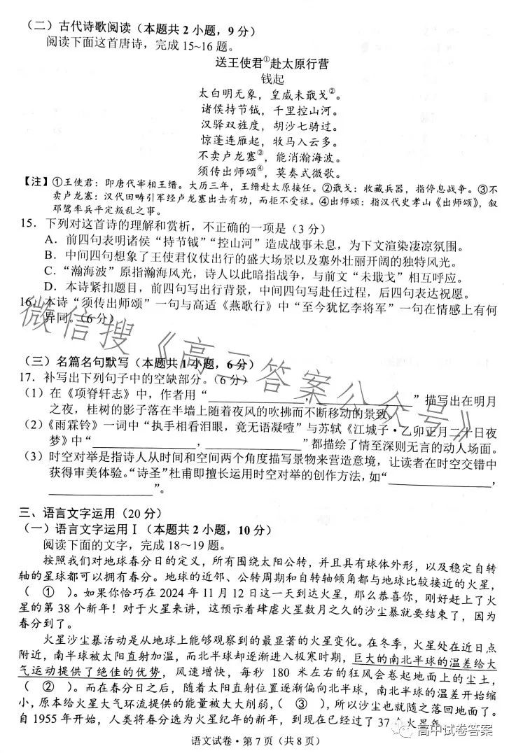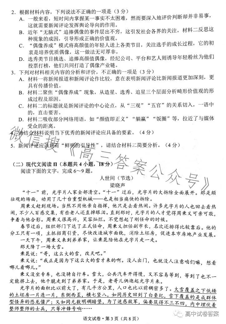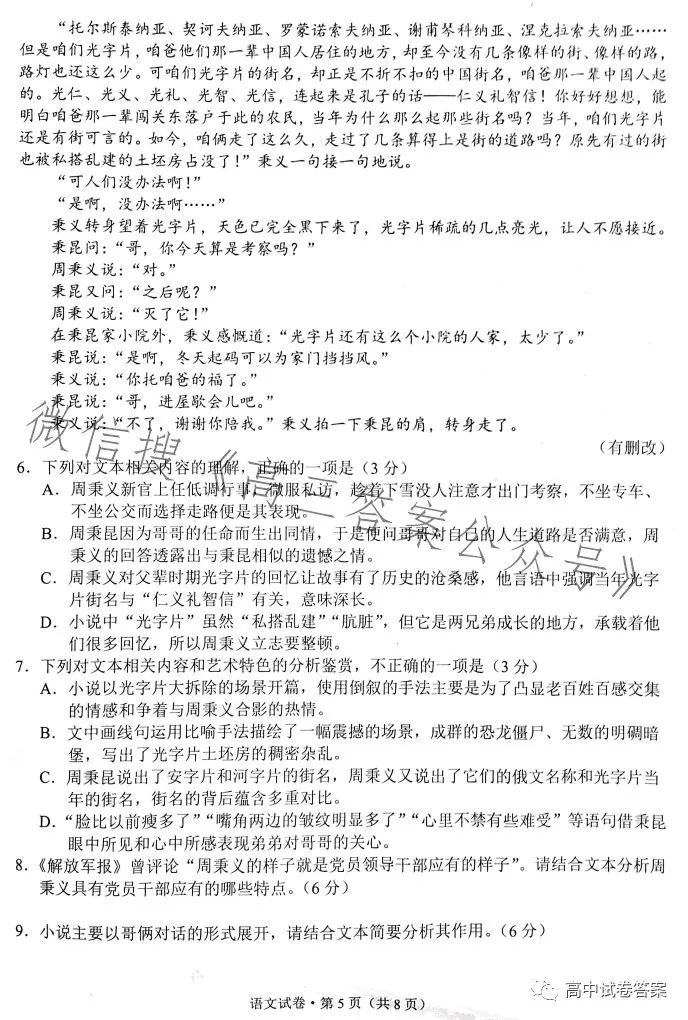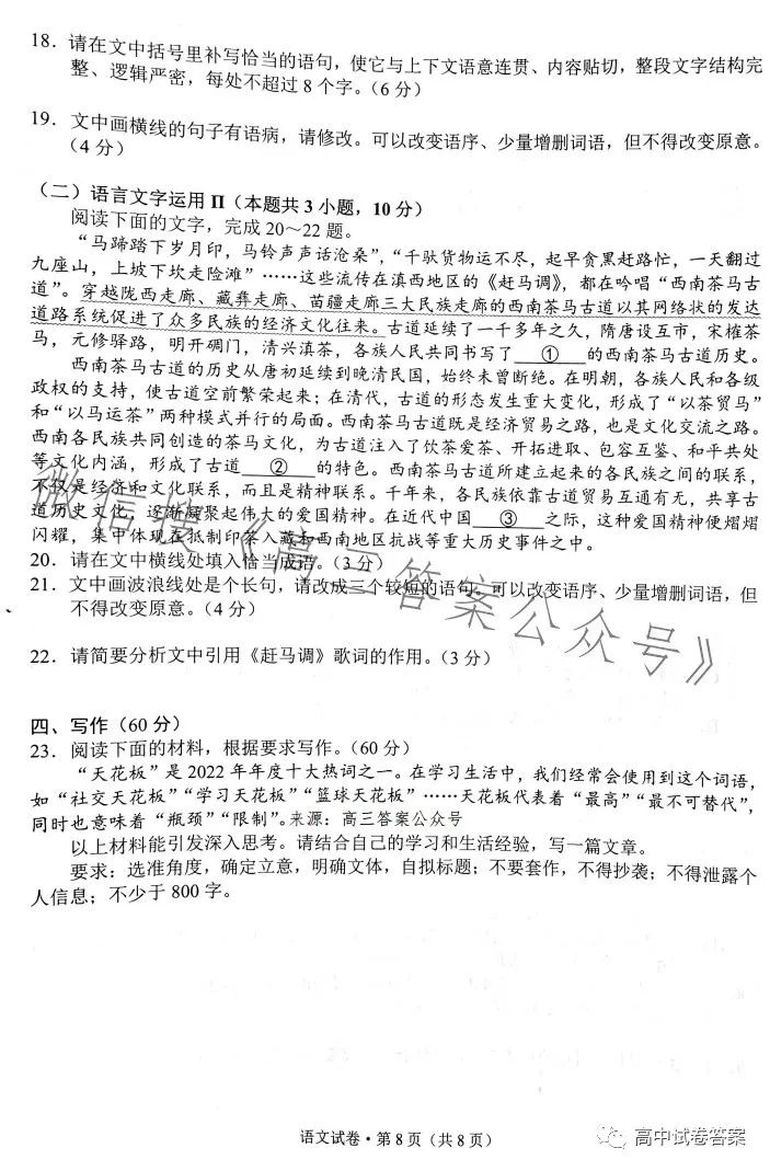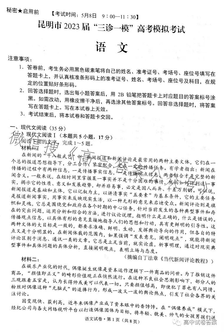 一、2023昆明三诊一模高三5月模考语文试卷及答案解析