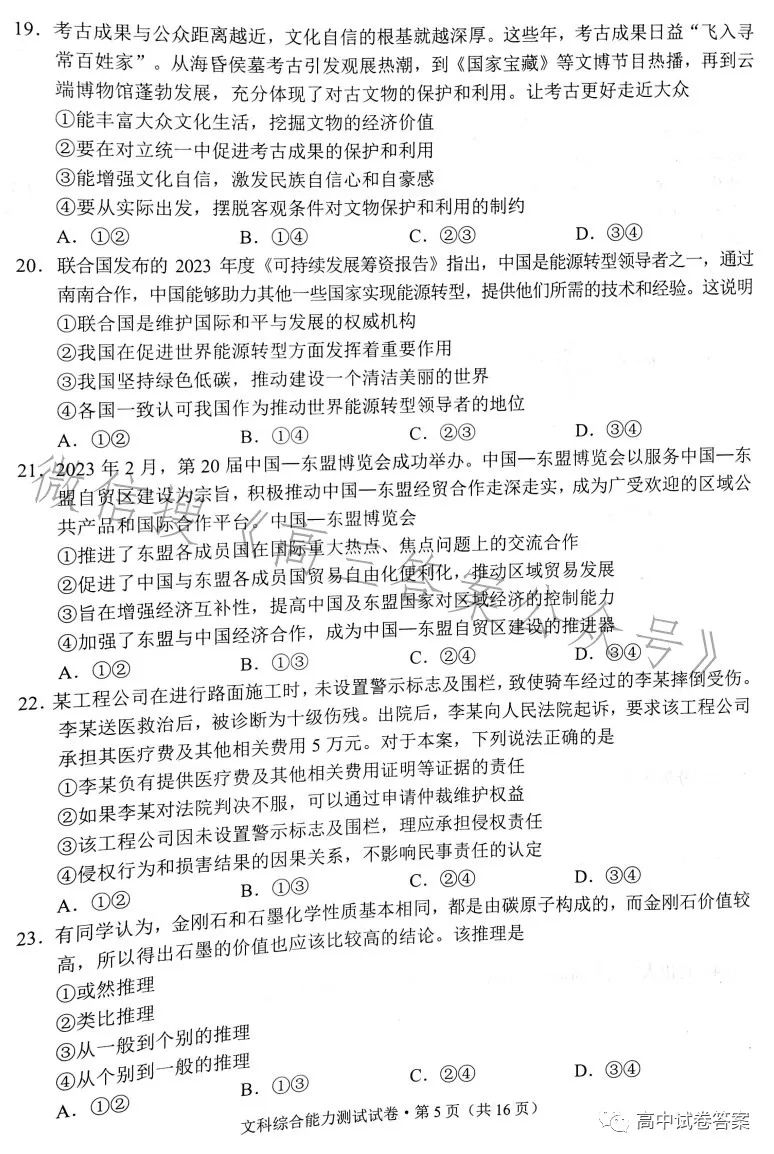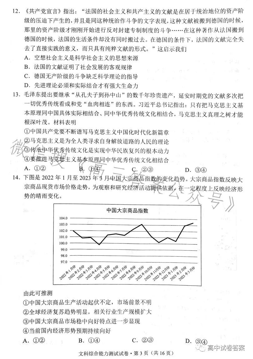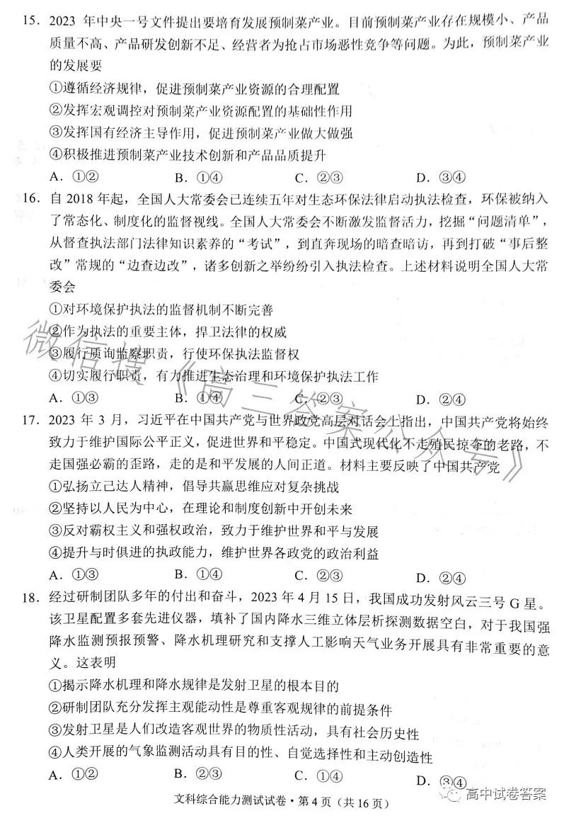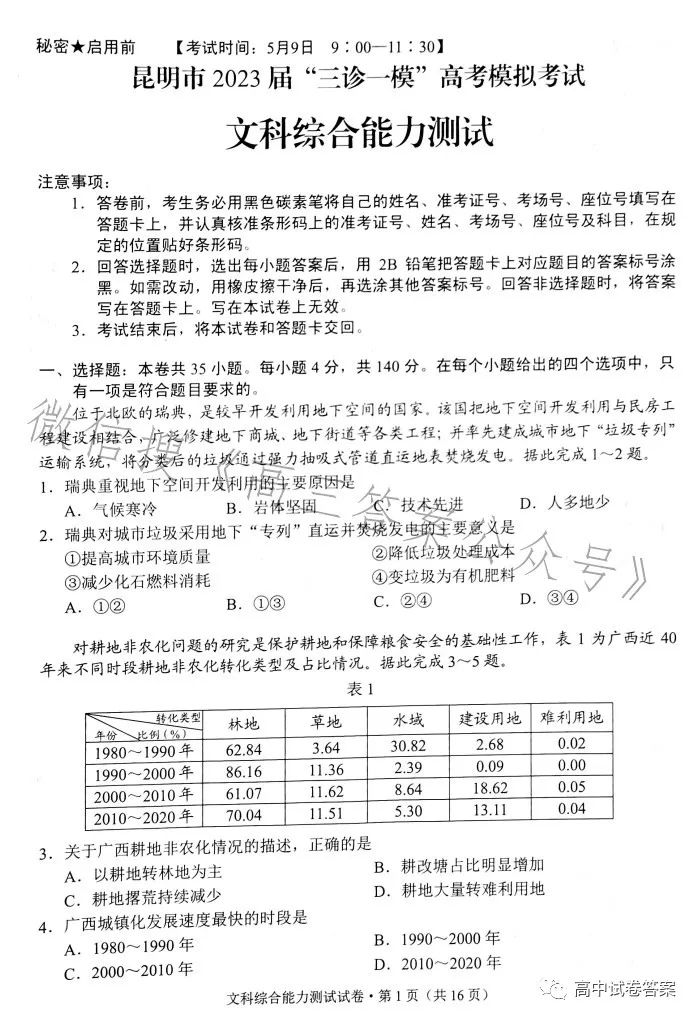 四、2023昆明三诊一模高三5月模考文综试卷及答案解析