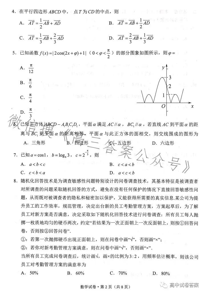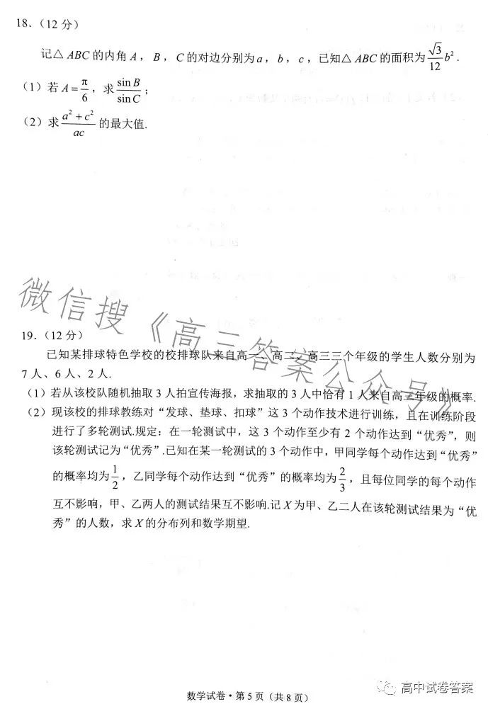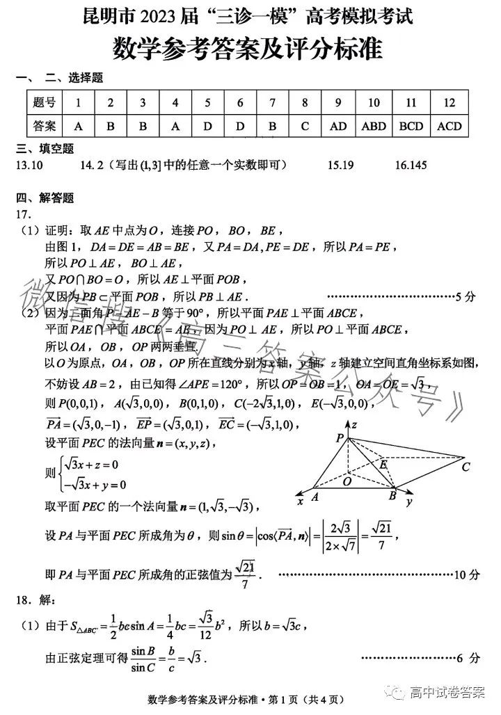 二、2023昆明三诊一模高三5月模考数学试卷及答案解析