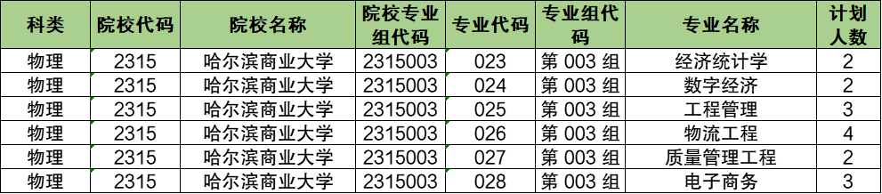 第003组:专业组代码为2315003,包含专业经济统计学、数字经济、工程管理、物流工程、质量管理工程、电子商务。