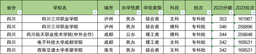 在四川省340分-355分的理科考生只能上专科学校,四川省内能选择的大学有4所,除四川航天职业技术学院之外均为民办大学。