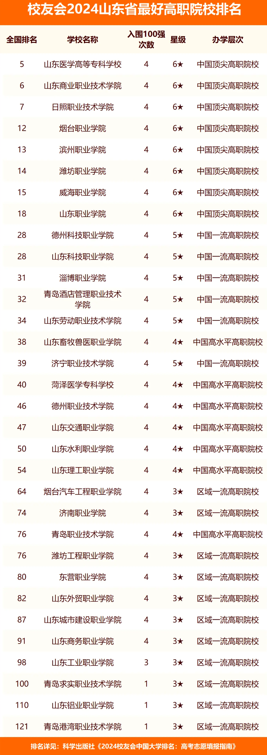 我们在校友会官方获取到了2024年山东省最好高职院校(包含民办)排名如下,其中: