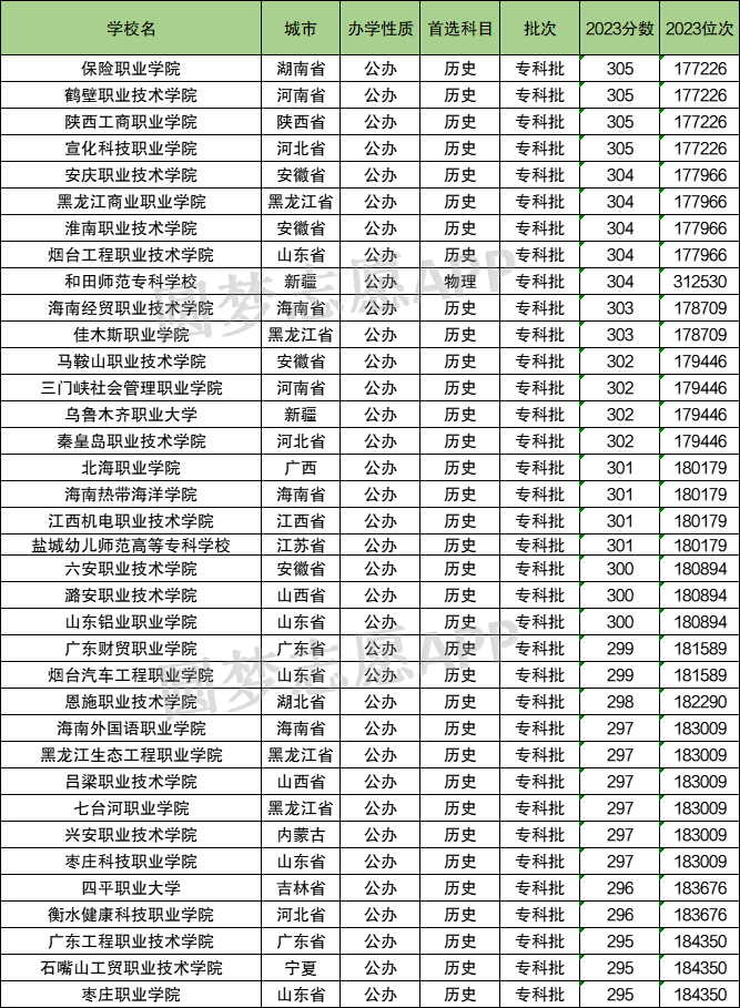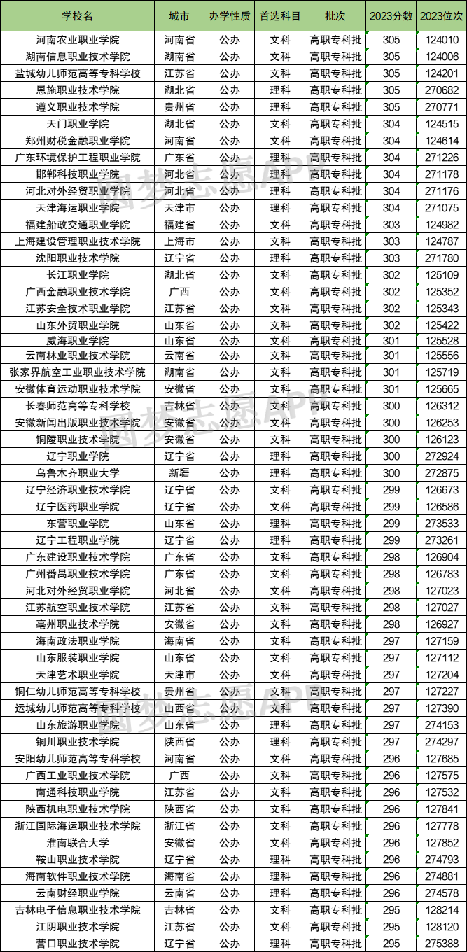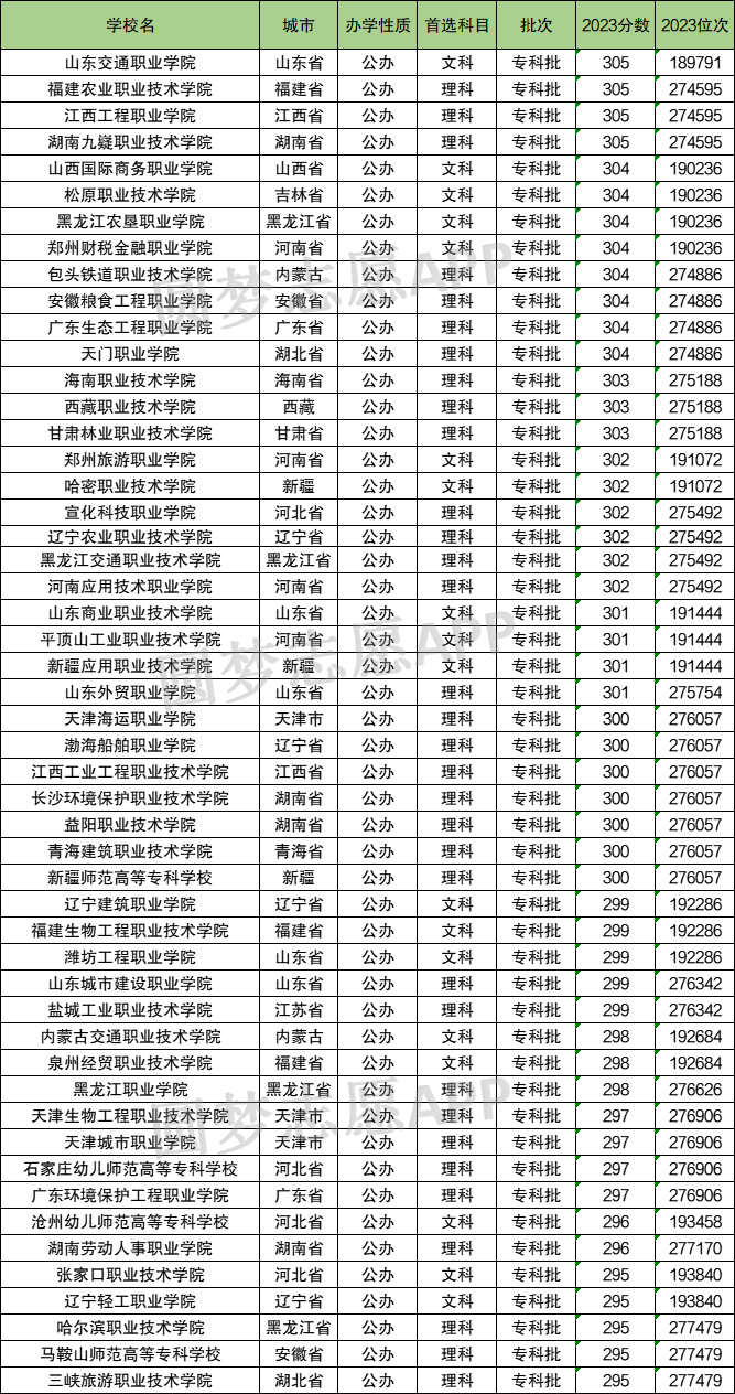300分能上公办专科学校有秦皇岛职业技术学院、山东外贸职业学院、福建船政交通职业学院等等,本期为大家整理了专科学校历年分数线一览表,方便大家了解300分左右有哪些公办专科学院。