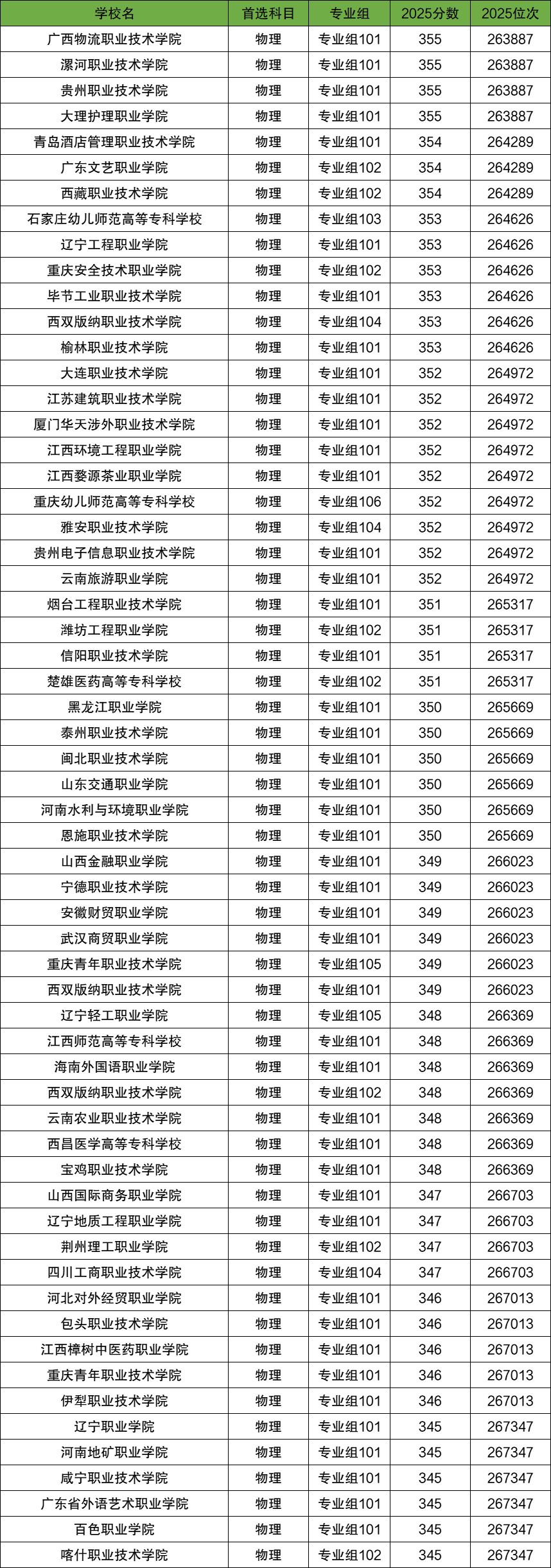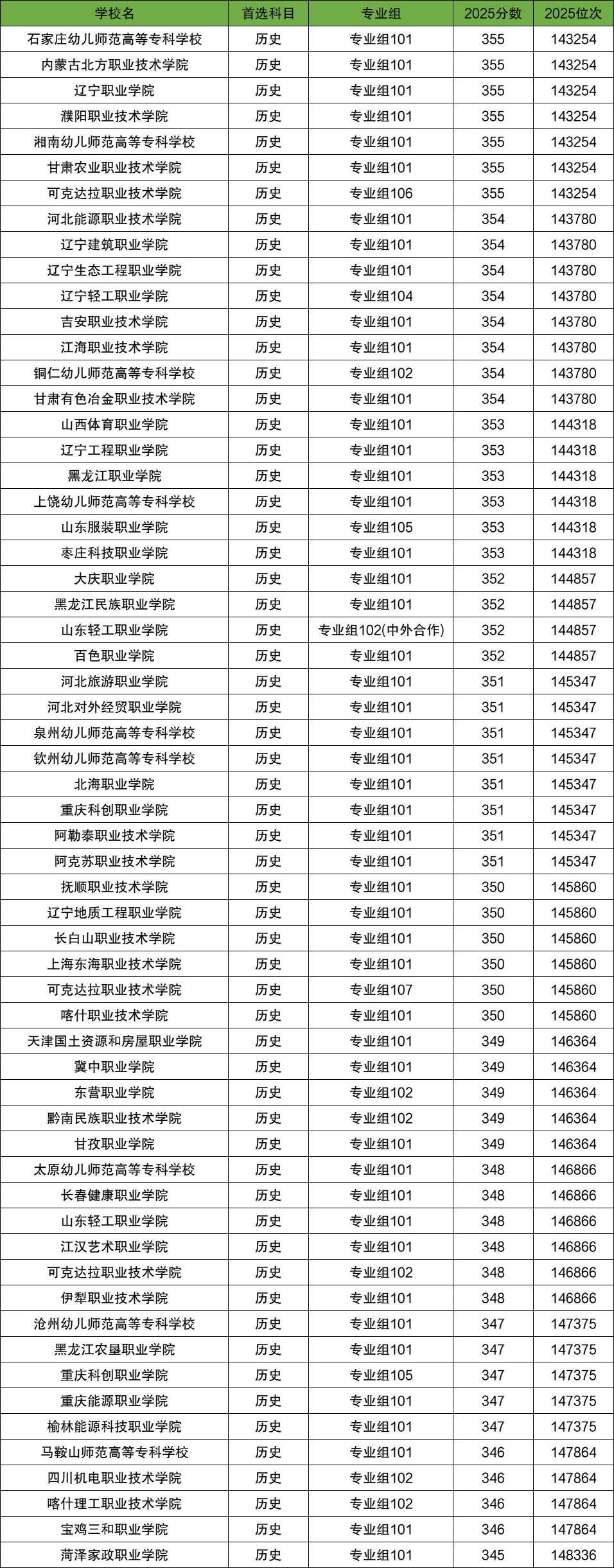 345-355分的院校专业组有60个,都属于普通的高职院校。