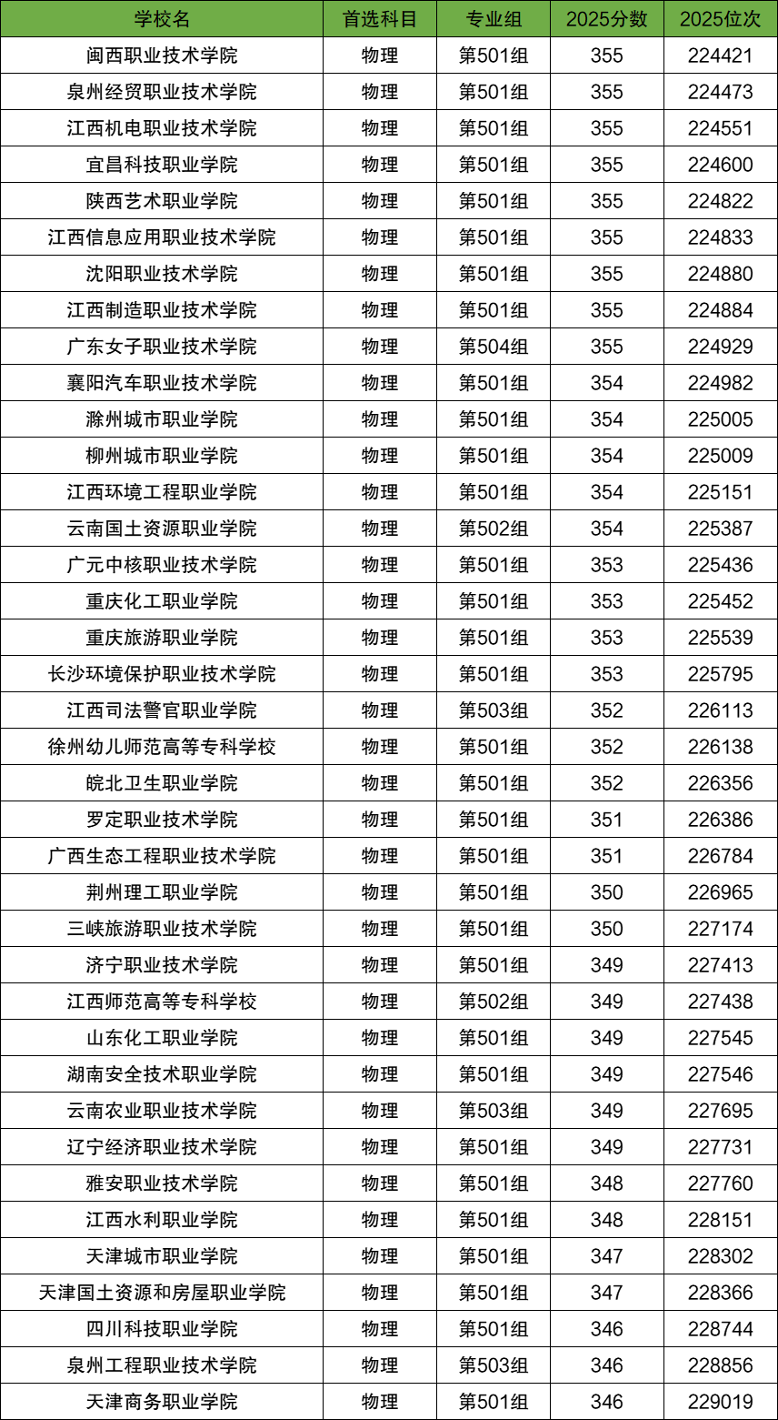 受分数线差异的影响,各省350分左右能上的院校都是有所不同的,小编在此以江西和四川为例,整理了2025年这两个地区350分左右的专科院校,如下: