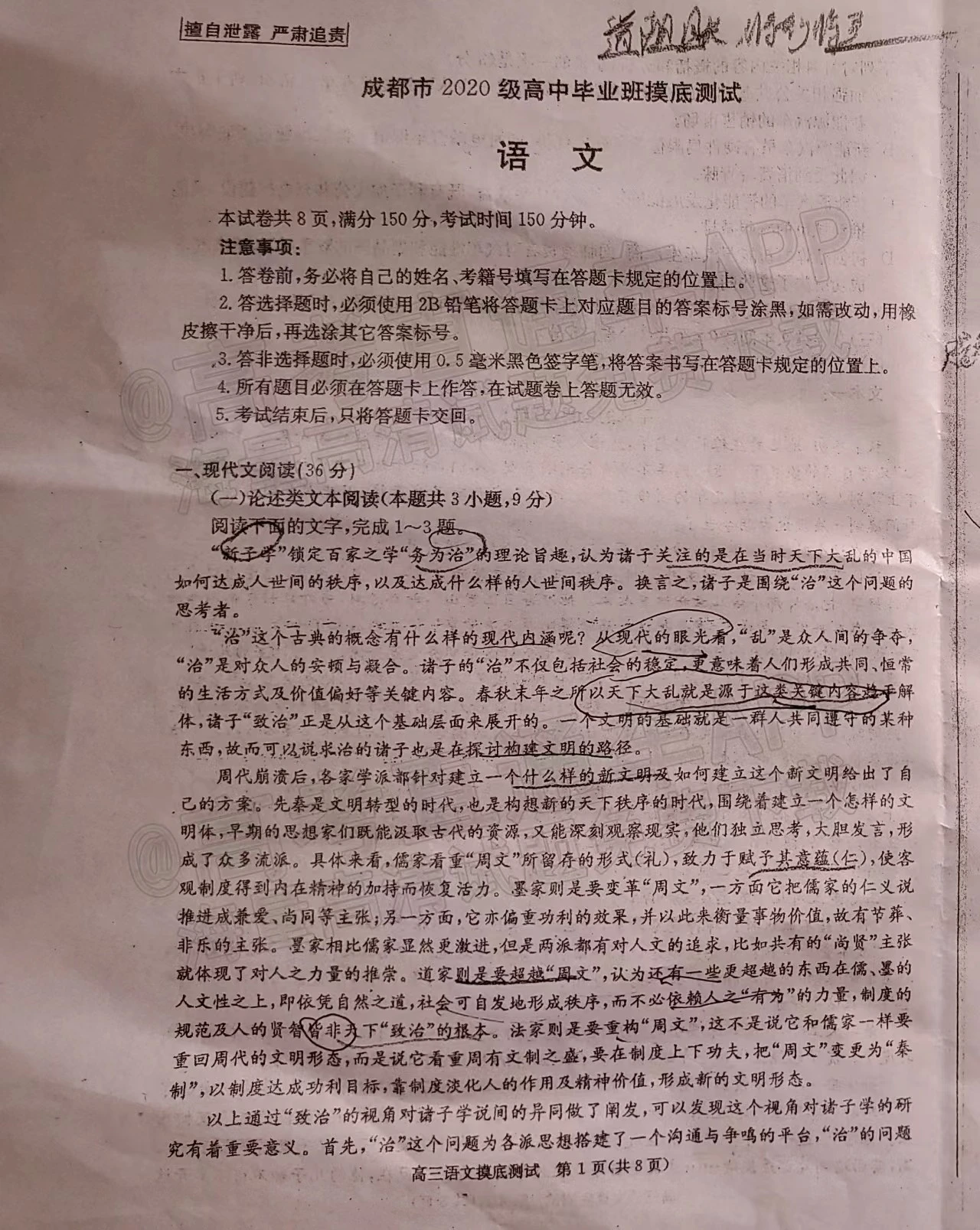 成都零诊各科试题及答案解析汇总:https://www.gk100.com/read_70706.htm