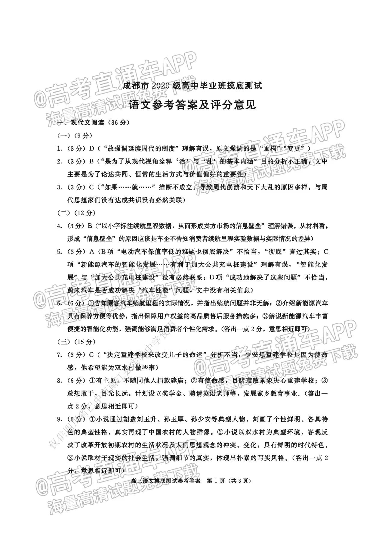 2023年的成都零诊考试将在6月7日举行,一共考三天。届时考完,同学们应该很关注各科的试题以及答案,在本文,小编整理了2023成都零诊语文答案解析及语文真题汇总,以供考生们参考。