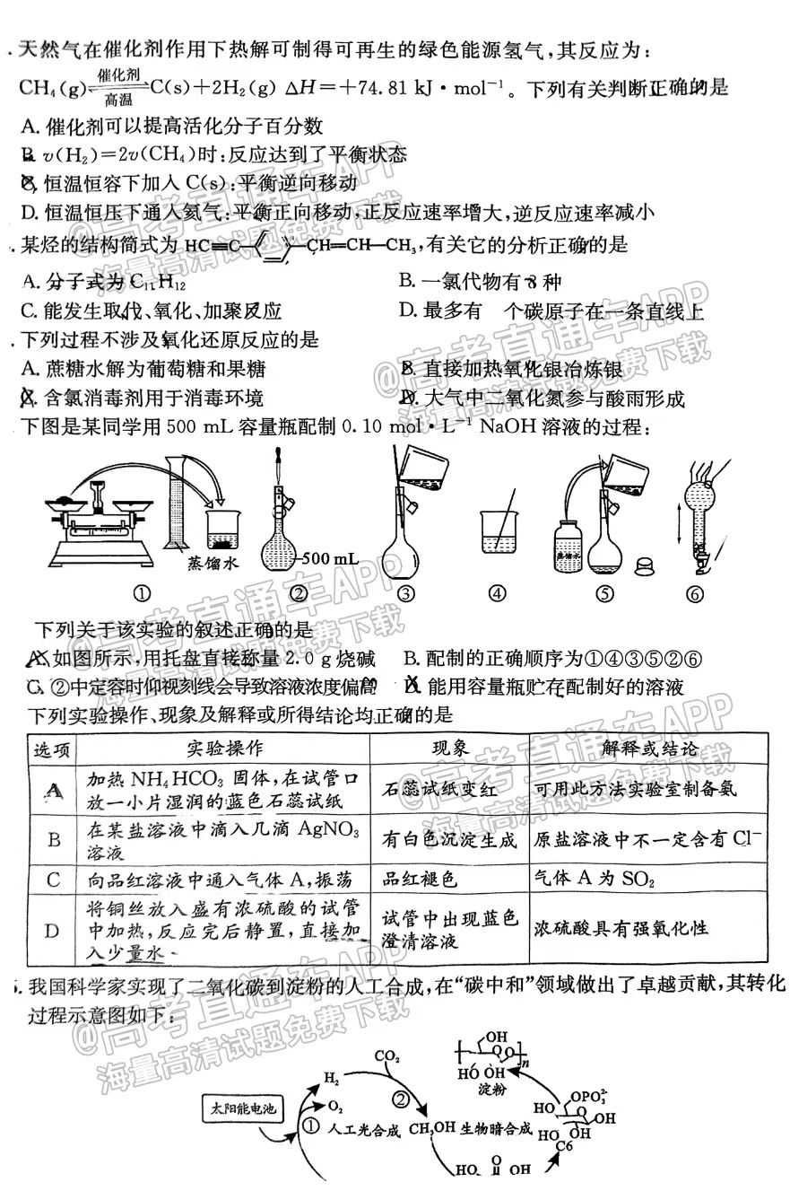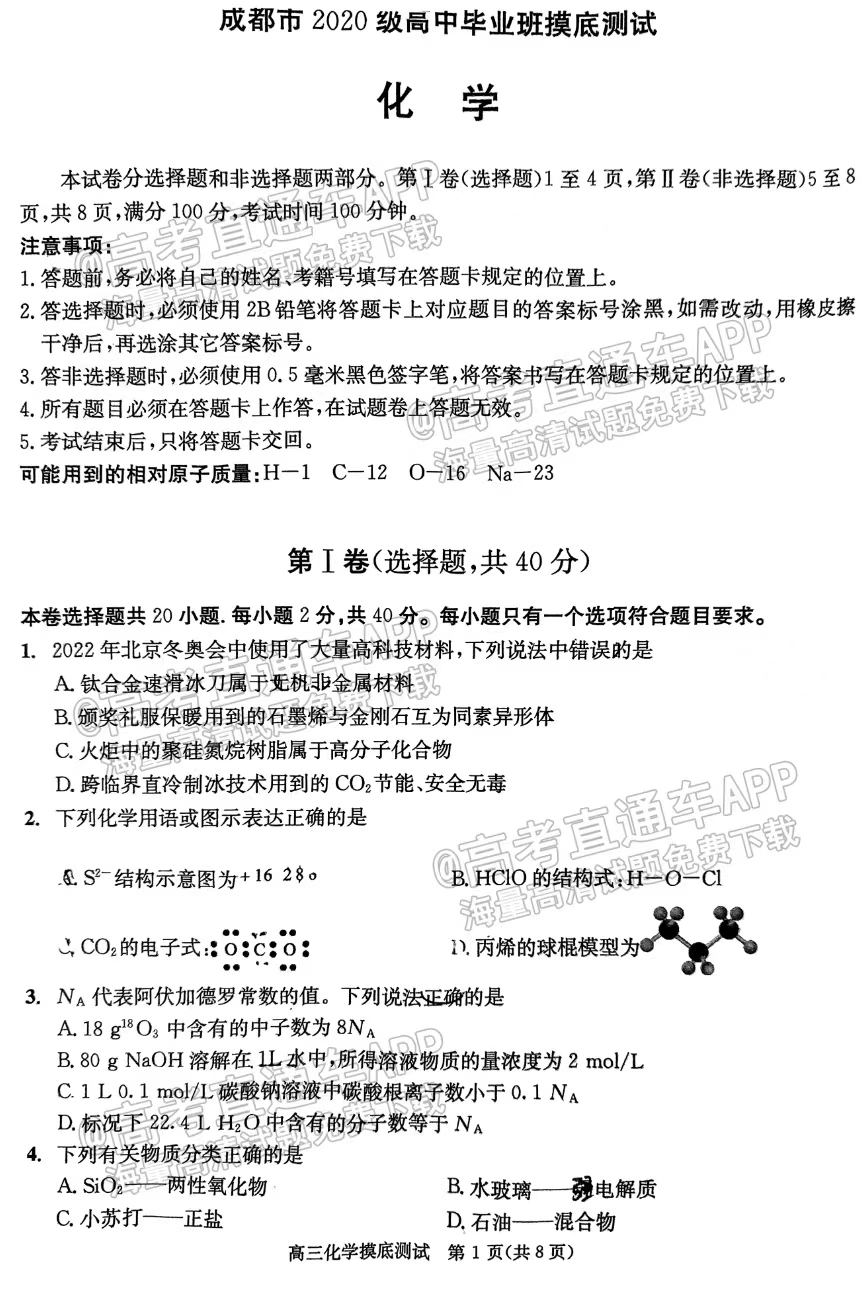 一.2023成都零诊化学真题