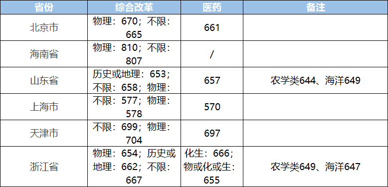 如果是按照分数来说,则是至少要在630分以上,只有两个地区浙江大学的分数线低于630分。