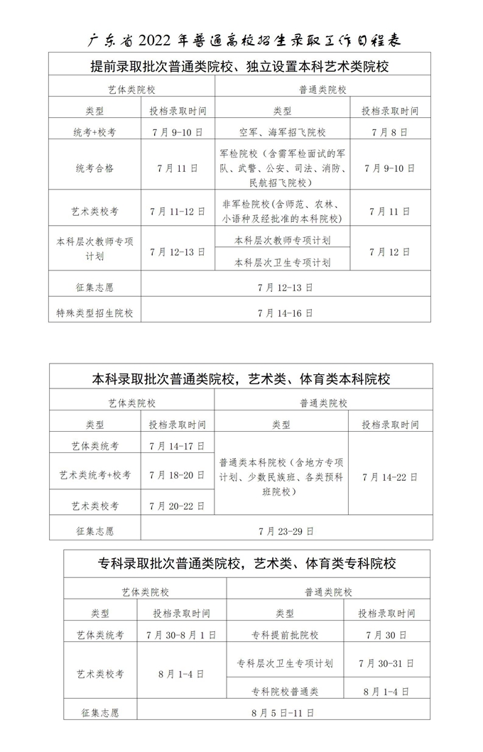 以上就是广东省2022年高考各个批次的录取时间详情,以下是官方时间表: