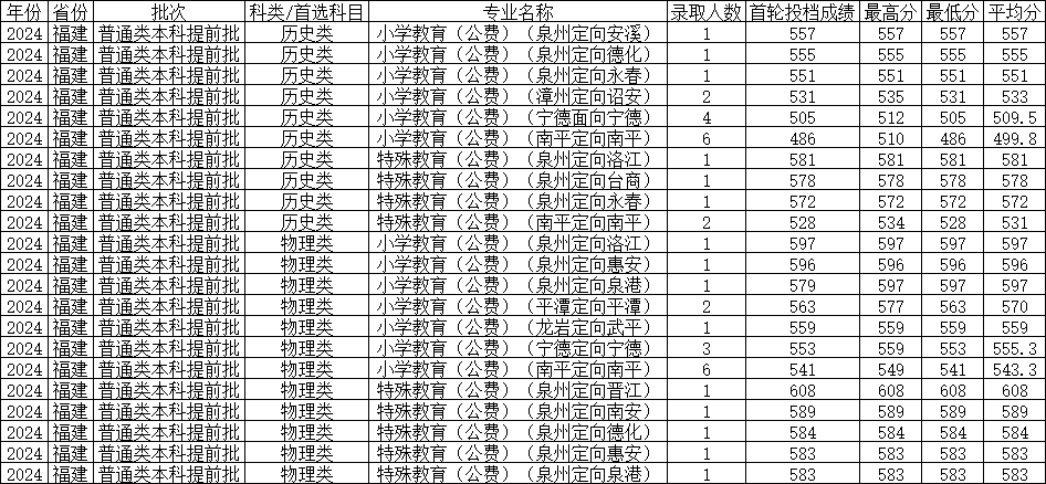 2024年福建公费师范生院校录取分数线最低分:泉州师范大学486分、福建师范大学516分。