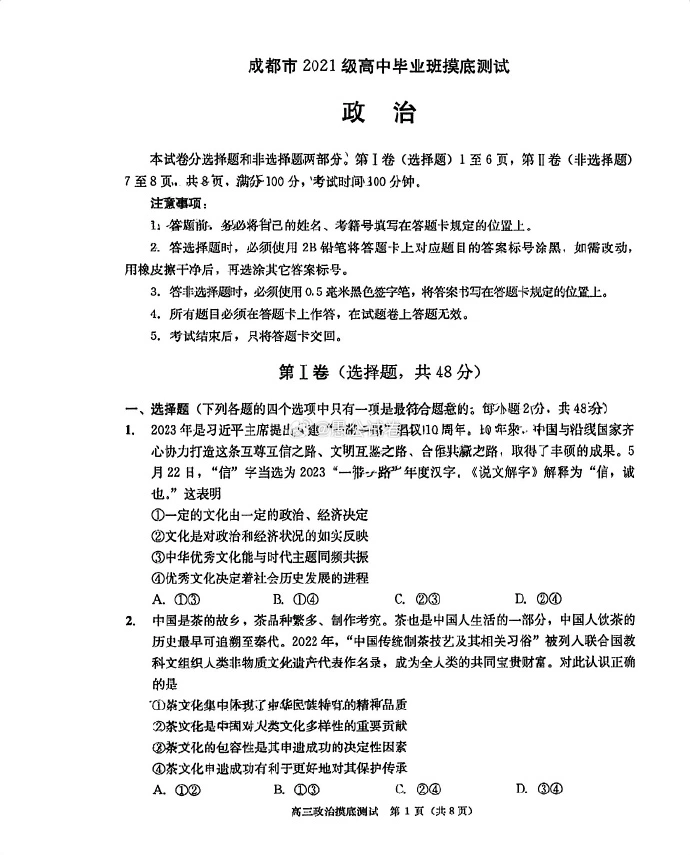 成都零诊2024答案试卷各科汇总,2024成都零诊将于2023年7月5日进行考试,本文将在成都零诊考试结束后,为大家及时更新2024成都零诊考试各科试卷答案,含成都零诊语文、数学、英语等科目试卷及答案汇总。