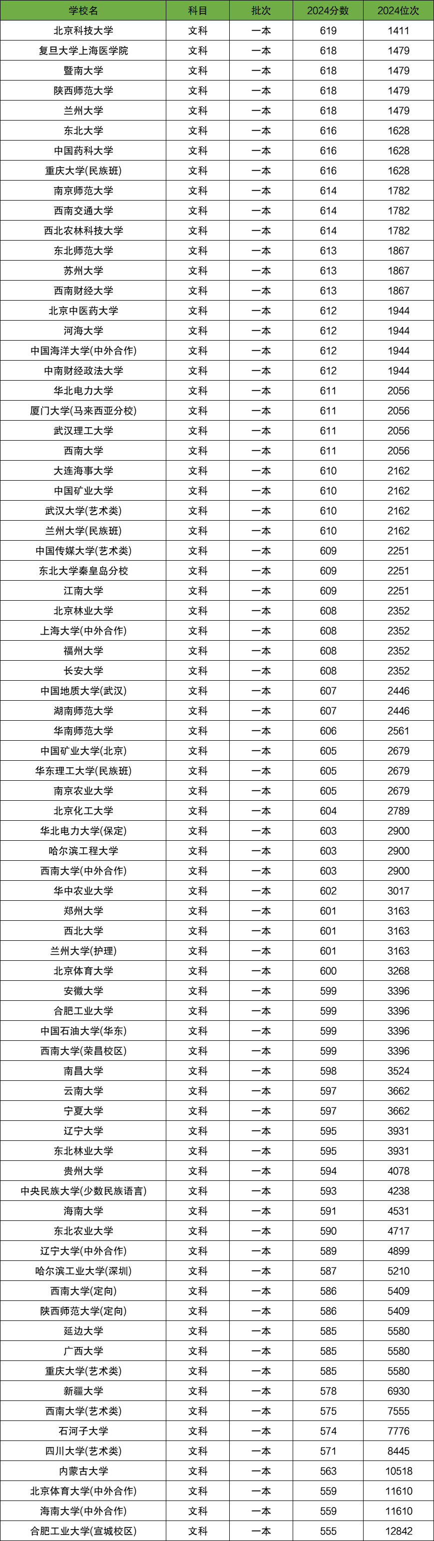 2024年云南省文科一本线为550分。云南文科生超过一本线70分能报考的211大学有北京科技大学、复旦大学上海医学院、暨南大学、陕西师范大学、兰州大学等。